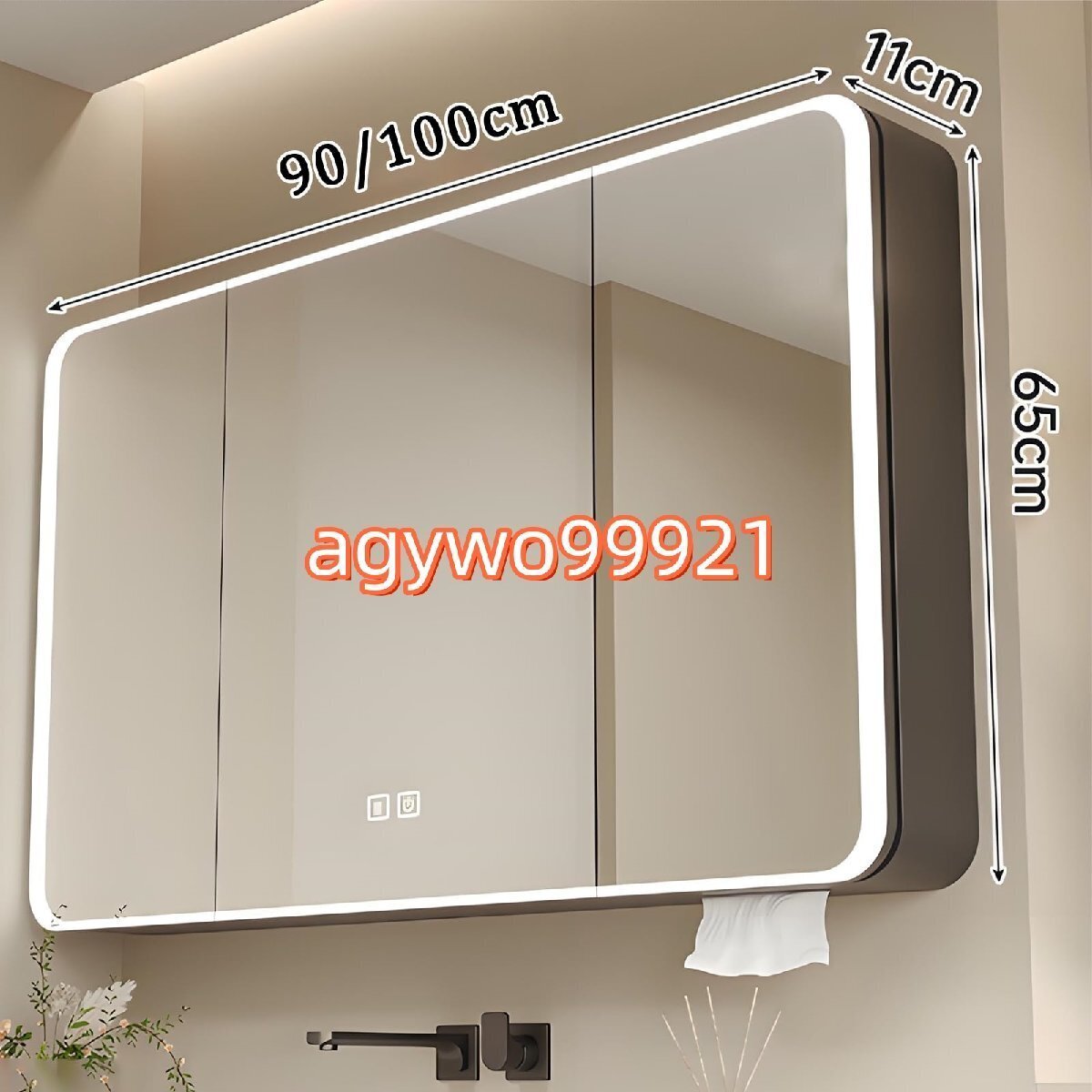 洗面化粧台 ミラー付き照明付き薬キャビネット、浴室??LEDライトとミラー付き ミラーキャビネット、洗面所鏡タッチコントロール、多機能バスルーム 浴室収納 曇り止め 大容量ロッカー 廊下 寝室 リビングに適している (ホワイト 90*11*65cm)