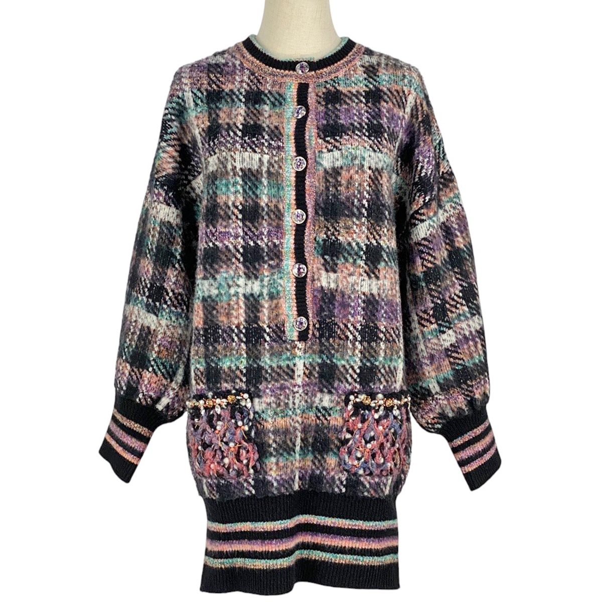 シャネル CHANEL ココマークボタン チュニック ビジュー ワンピース チュニック カシミヤ ウール シルクその他 ブラック ピンク マルチカラー レディース 【中古】 |