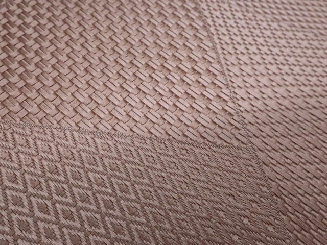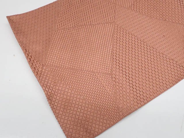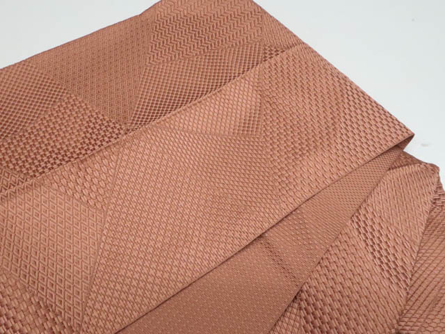 リサイクル商品でございますので着用じわがございますが、ご使用いただけるかと存じます。 地色はくすみピンクです。 1枚目の画像が近いお色かと思われます。 素材は正絹です。 |