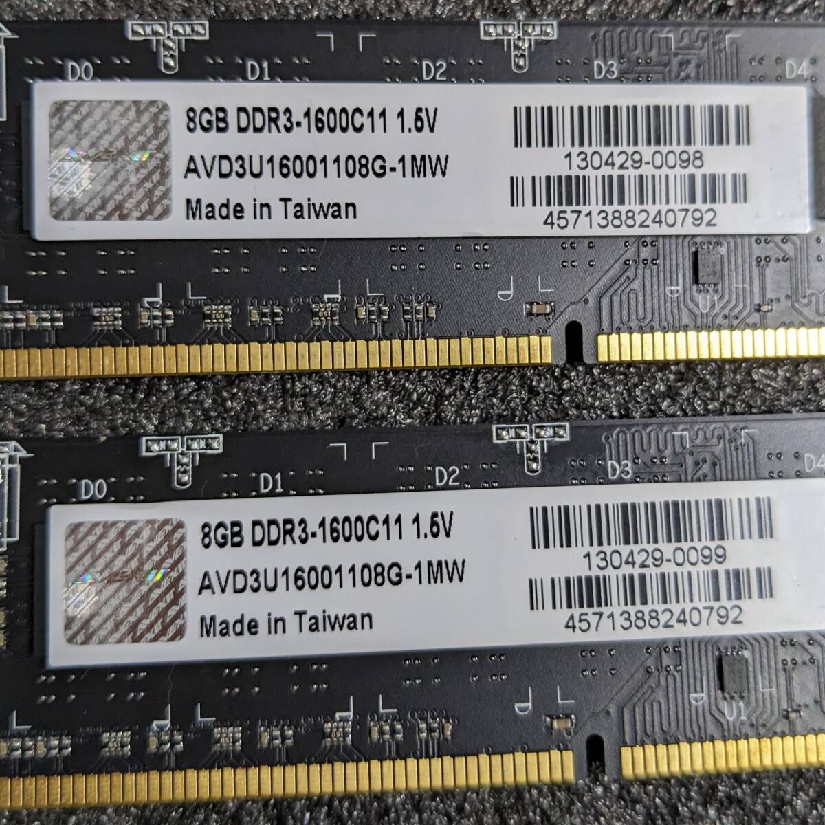 【中古】DDR3メモリ 16GB(8GB2枚組) AVEXIR AVD3U16001108G-1MW [DDR3-1600 PC3-12800]