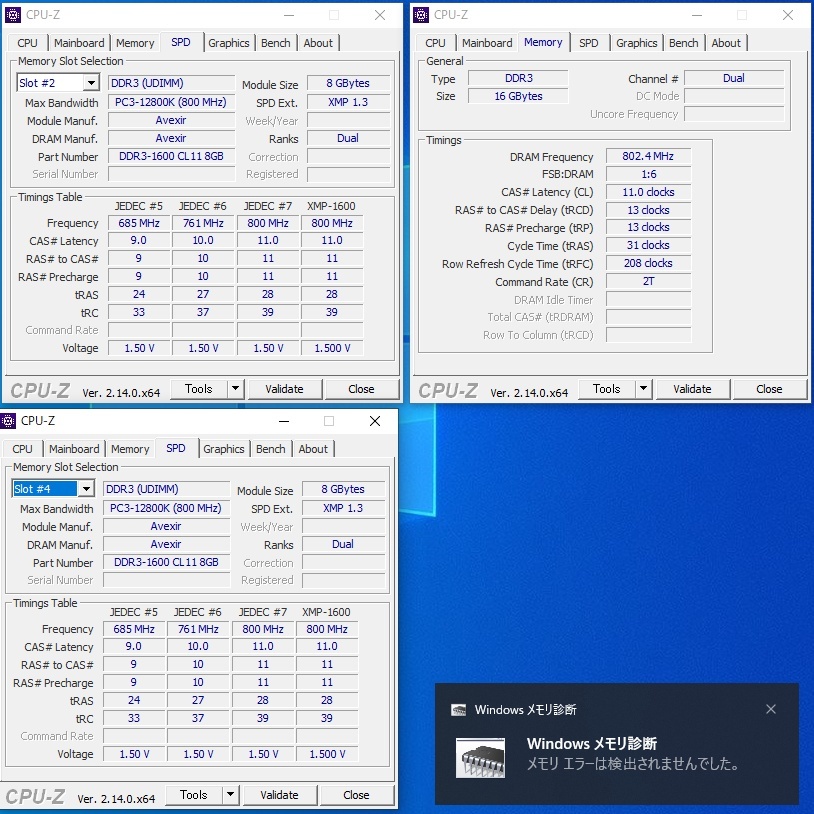Windows付属メモリ診断とMemtestでチェック済みです。