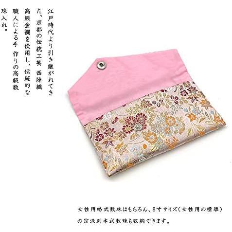 【数珠袋の特徴】:◆ソフトな色づかいの上品な柄が素敵な金襴(きんらん)。