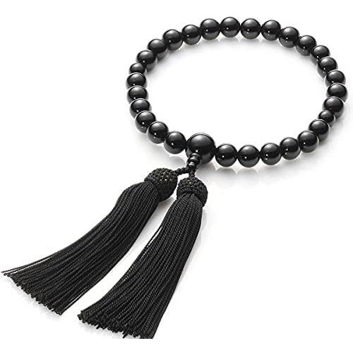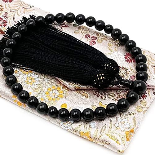 永善念珠屋 数珠 女性用( 黒オニキス 7mm玉 頭付房)【西陣織 数珠袋付き】全ての宗派で使える じゅず 女性 念珠 手作り
