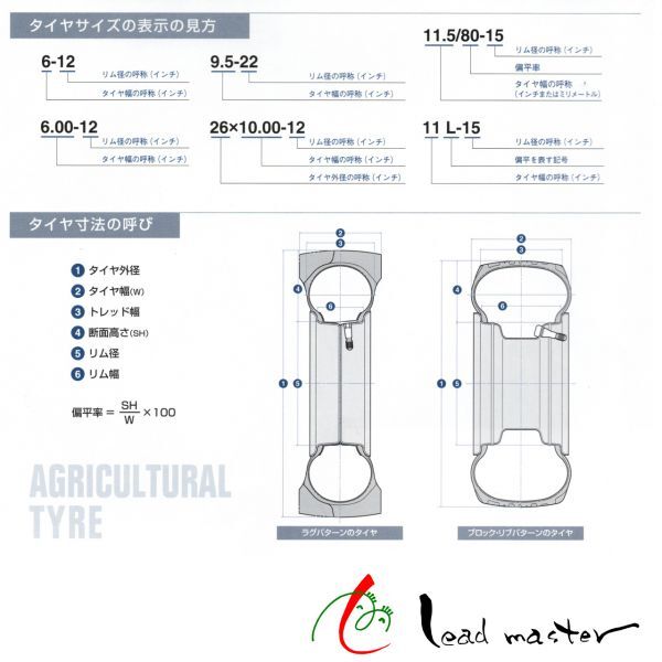 パターン特徴はトラクターの後輪用のスタンダードなパターンでハイラグタイプとなっています。