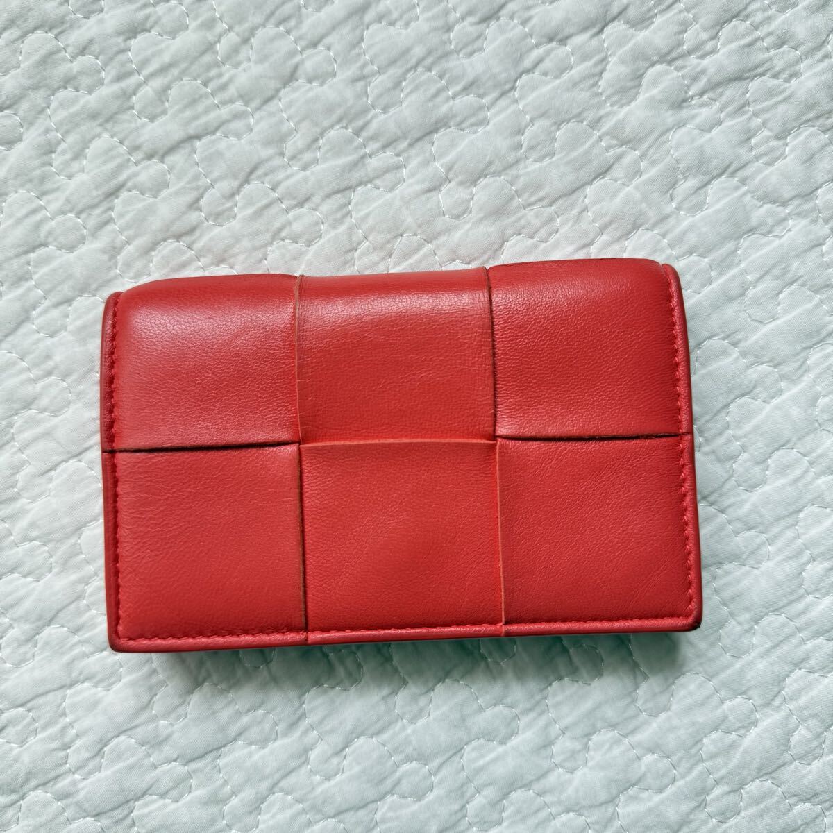 美品 BOTTEGA VENETA ボッテガヴェネタ カセット カードケース 名刺入れ イントレチャート レザー コーラルレッド レディース メンズ