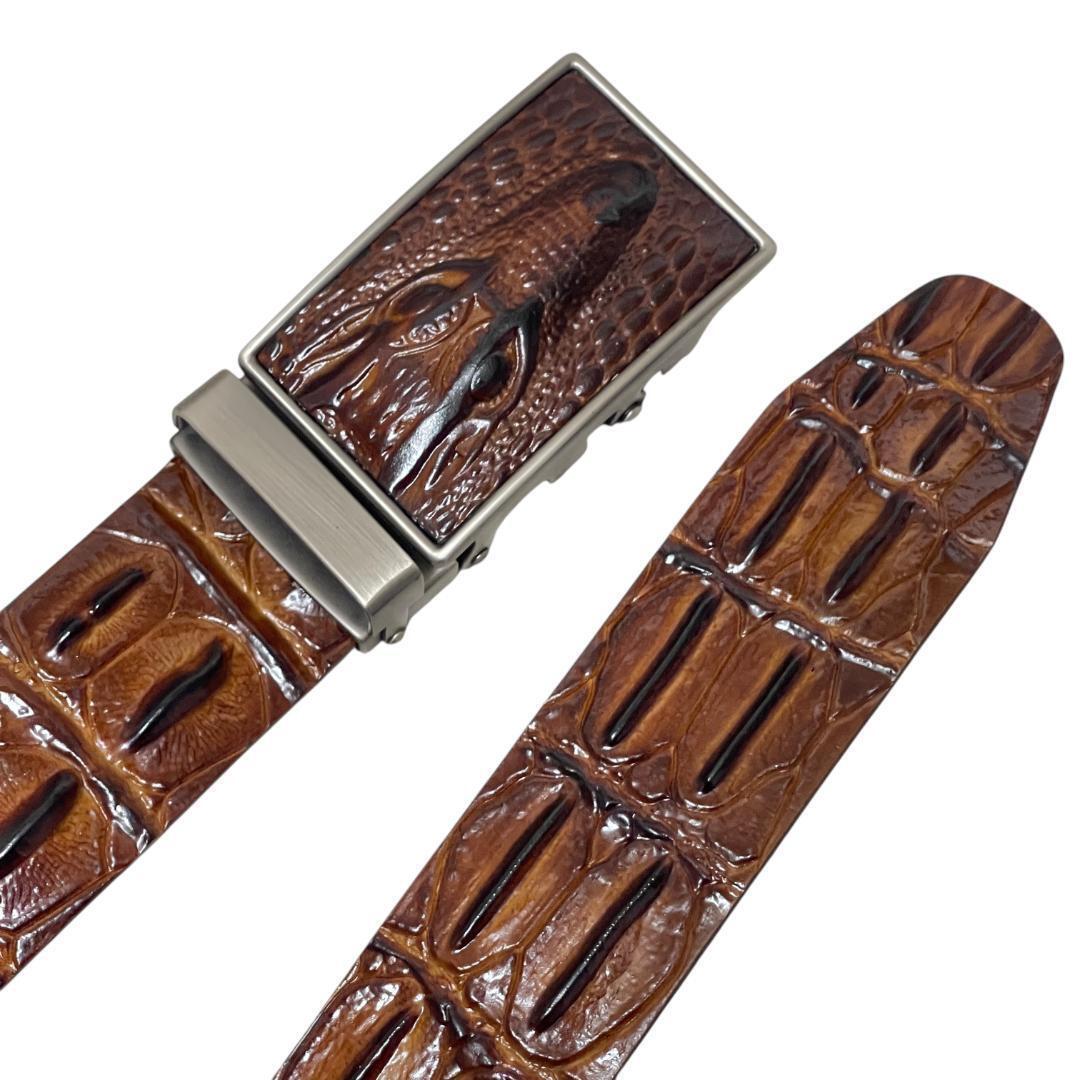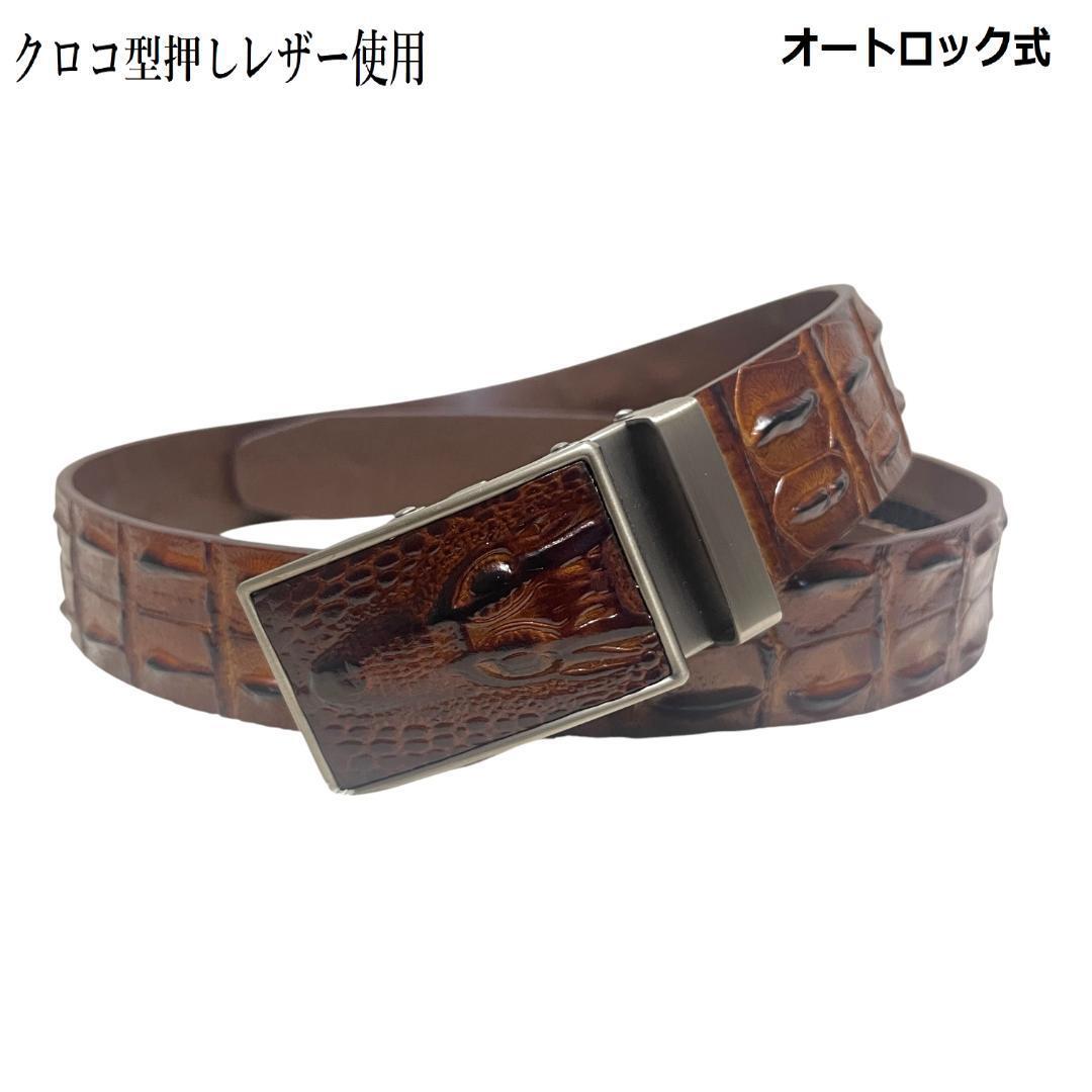 クロコ型押し レザー 本革 ベルト ブラウン 茶 48/120 オートロックベルト