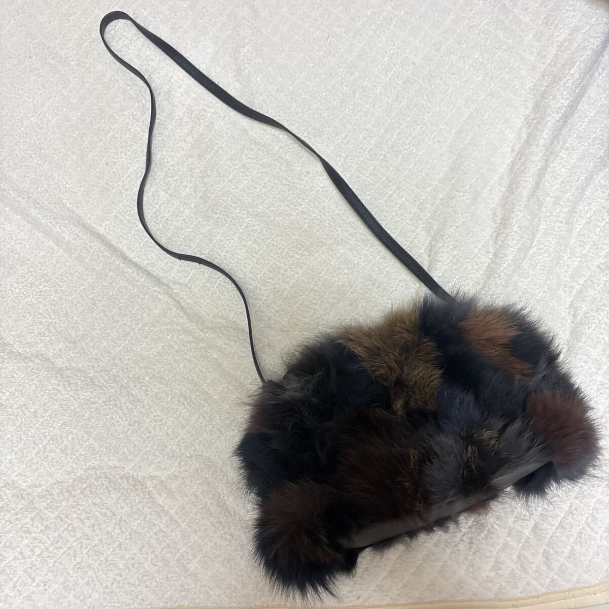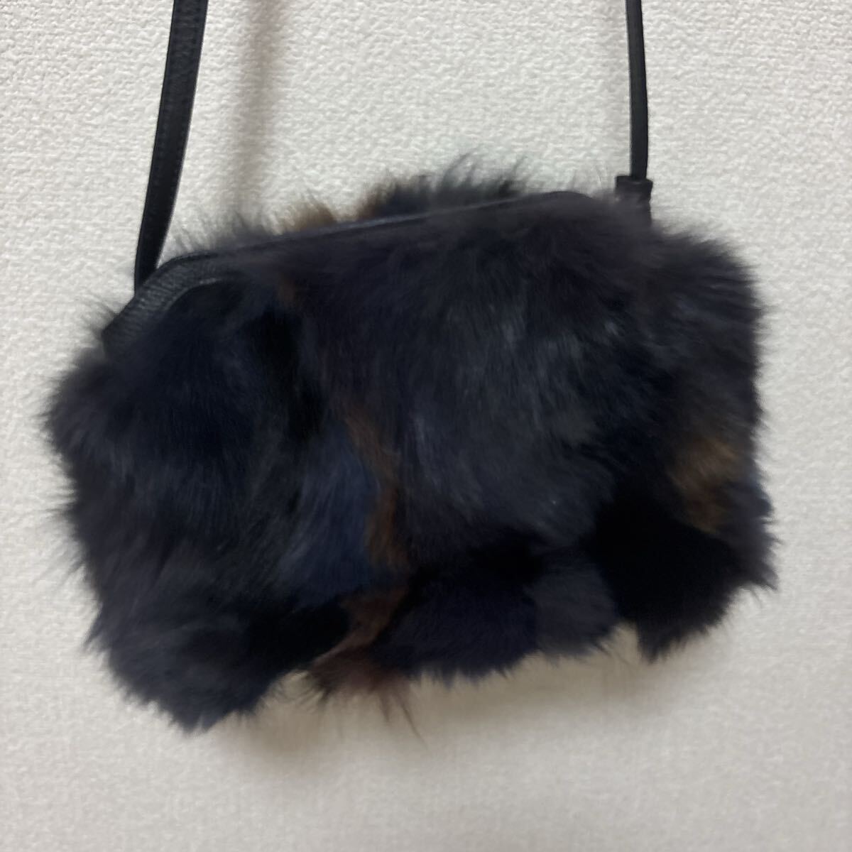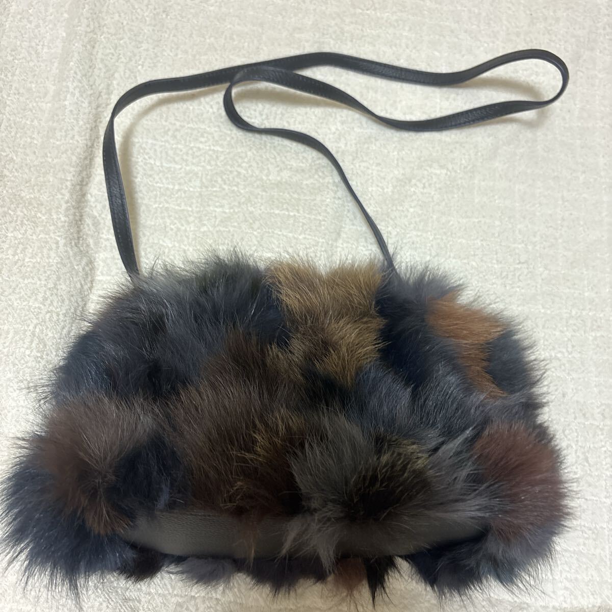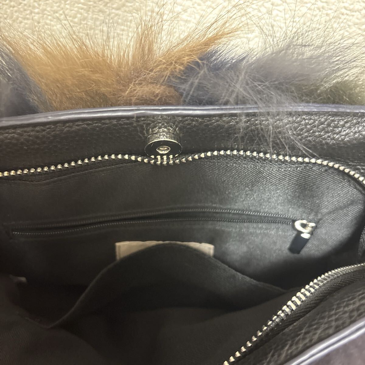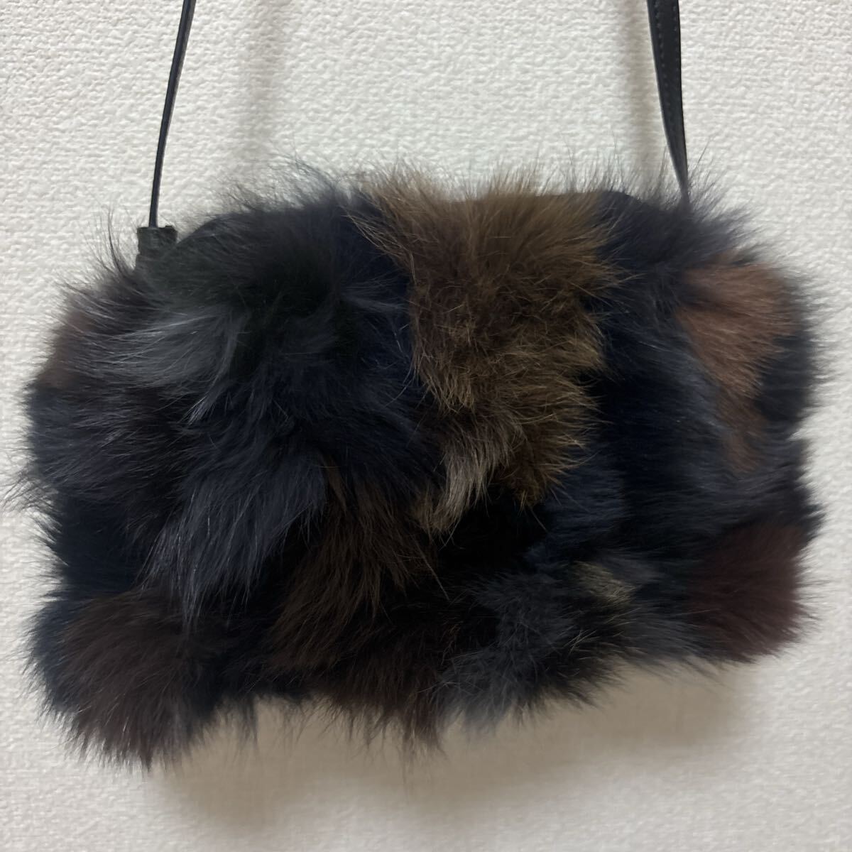 ブラック系のフォックスファーを使用したショルダーバッグで、内部にファスナー付きポケットがあります。