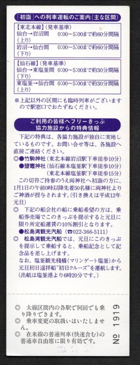 *平成12年 2000年記念開運初詣フリーきっぷ(JR東日本)仙台駅