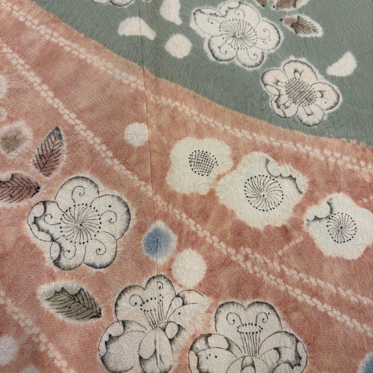 | 付下げ 秀品 辻が花 金彩 灰緑 袷 身丈161.5 裄丈62 S 正絹 【中古】 |