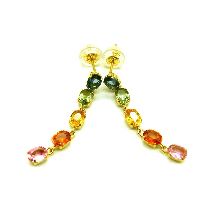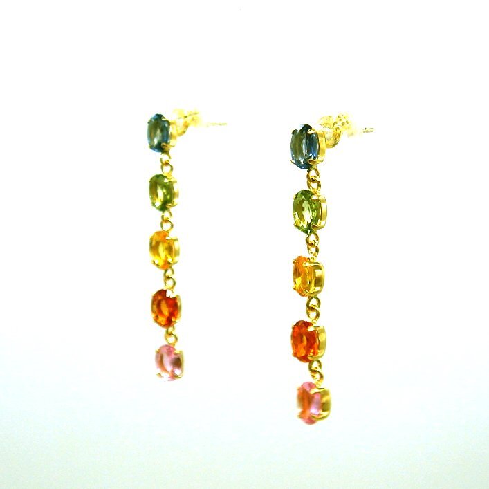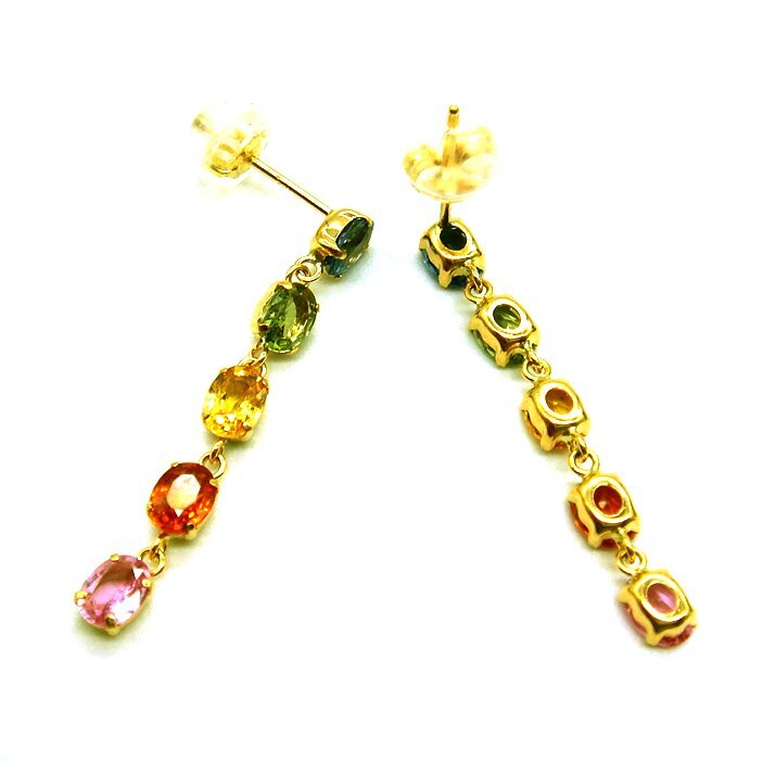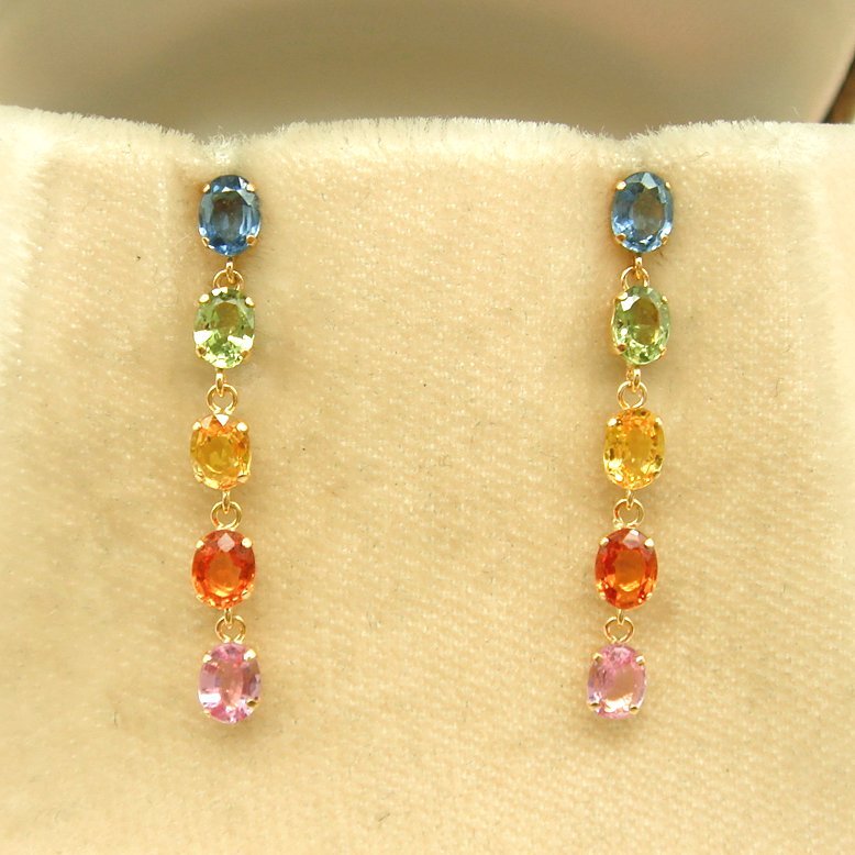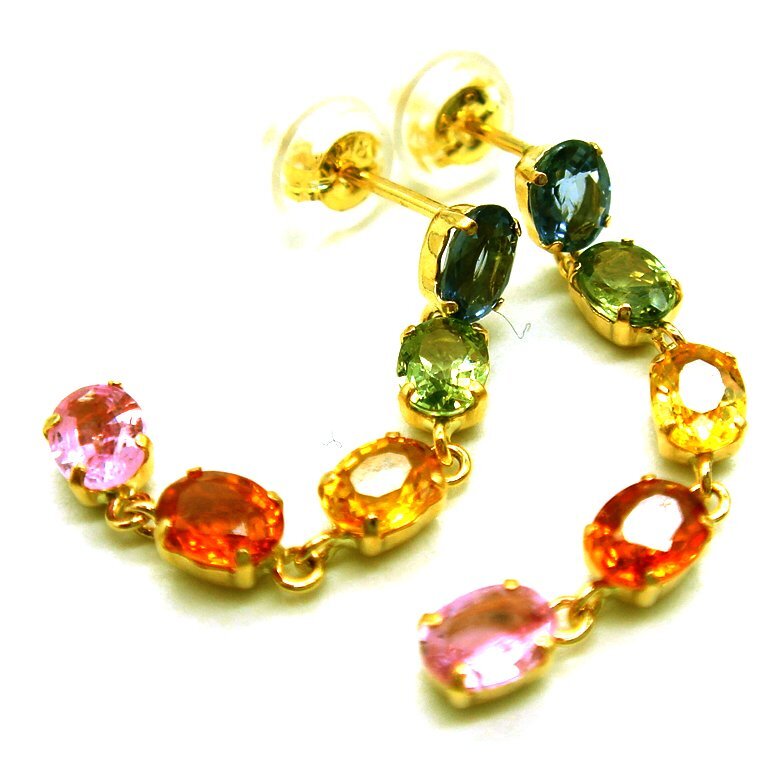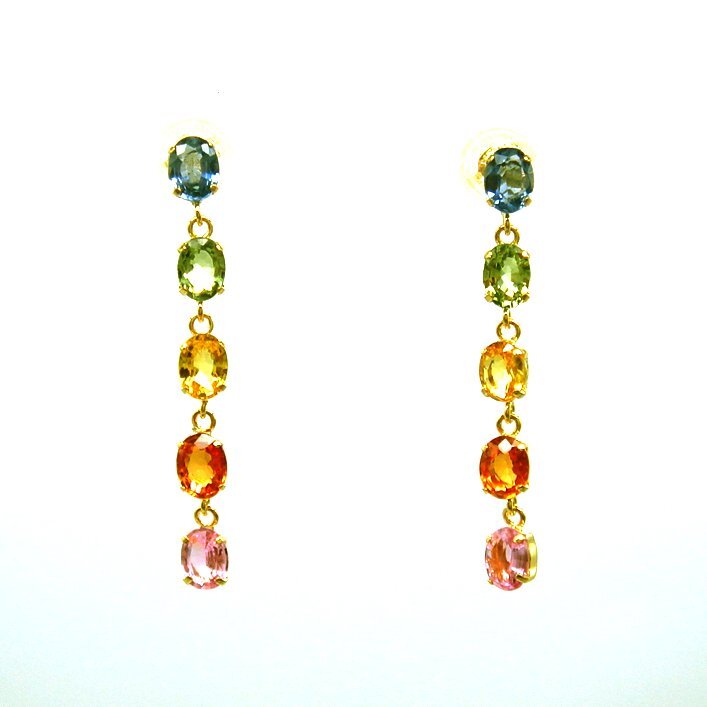 色とりどり、5色のカラーサファイアを使ってピアスに仕立てました。