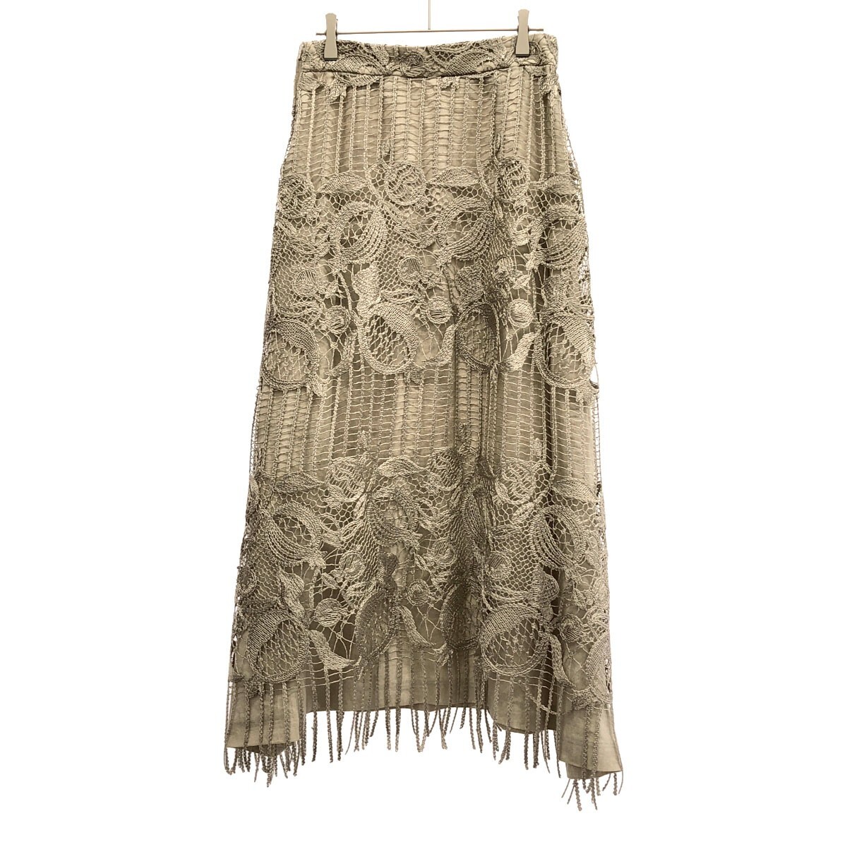 21SS ヘビーコードレース フリンジヘムロングスカート 3310500132