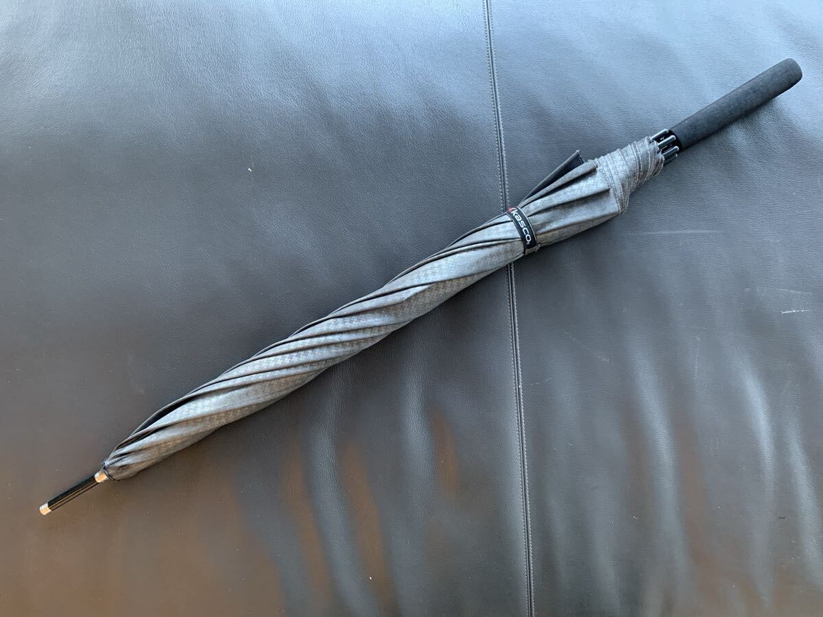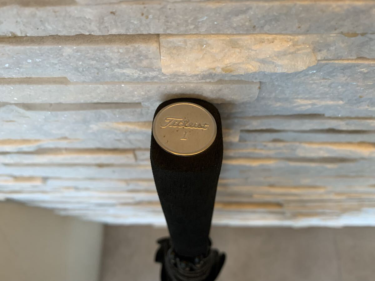 写真のとおり、ハンドルのグリップエンドにメダルを接着して、自分の傘だと見分けやすくするようにしております。