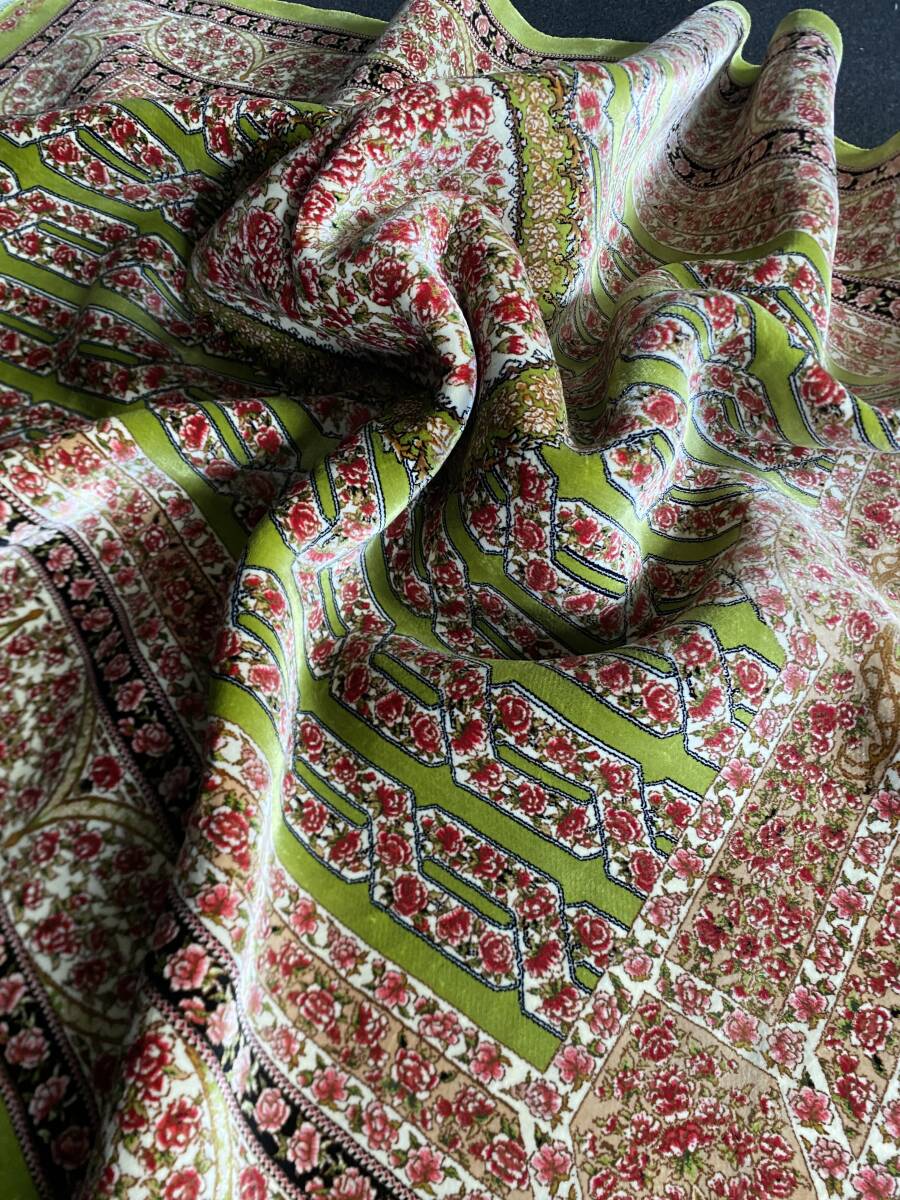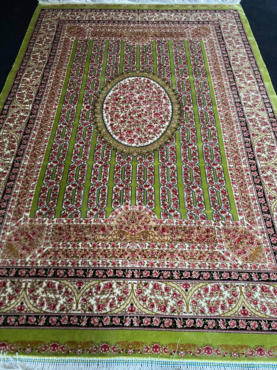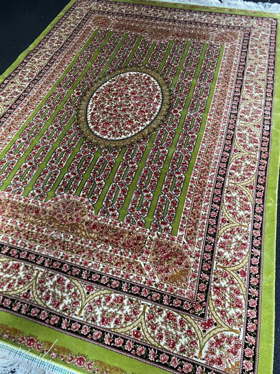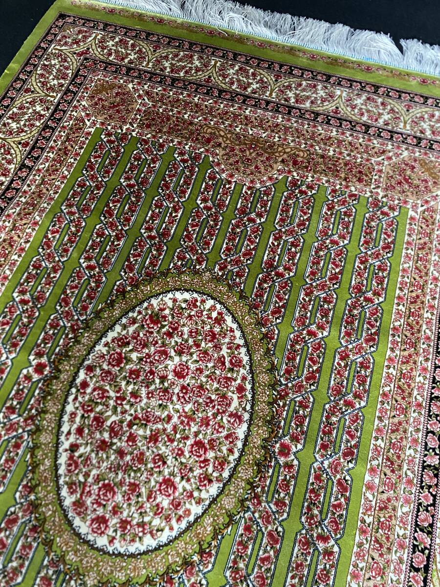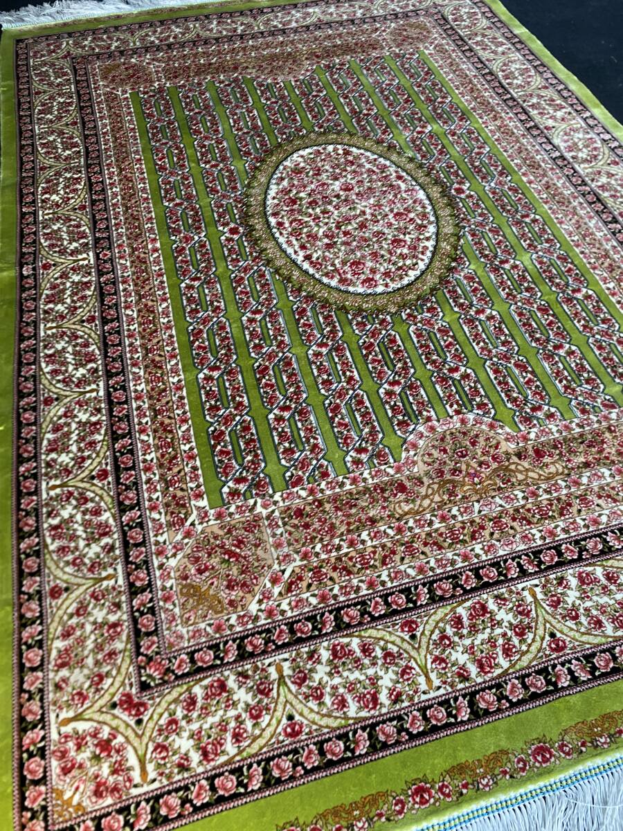 クム絨毯の歴史は1930年頃からと浅く、最初はウール絨毯を、後にシルク絨毯を織るようになりました。絹の産地としても有名なクムで、現在作られるほとんどの絨毯は100%シルク製です。