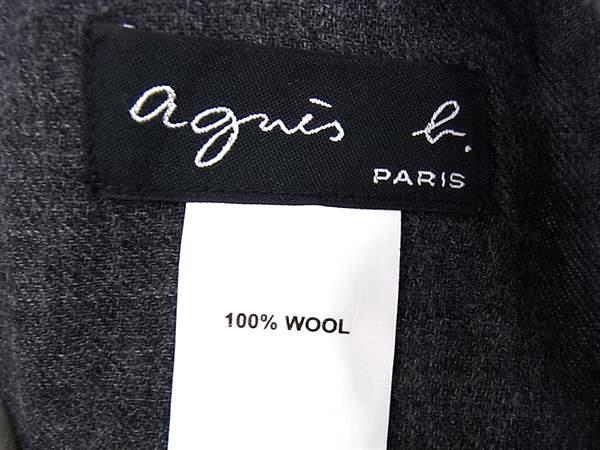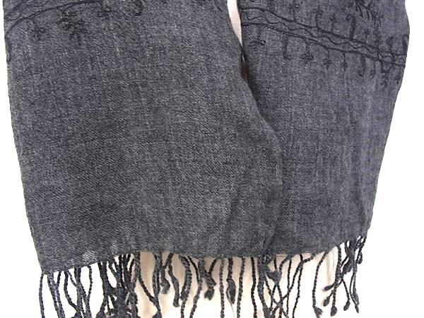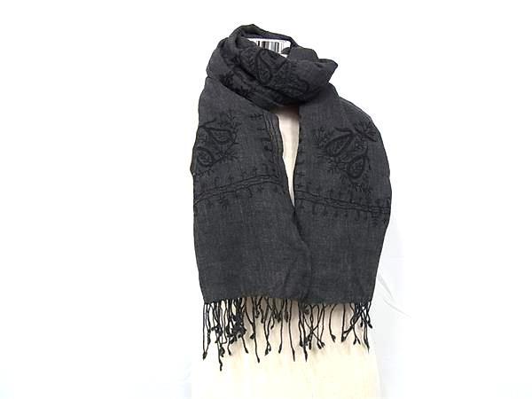 ■極美品■ agnes b. アニエスベー ウール100% フリンジ 刺繡 ショール ストール マフラー グレー系 DF4909