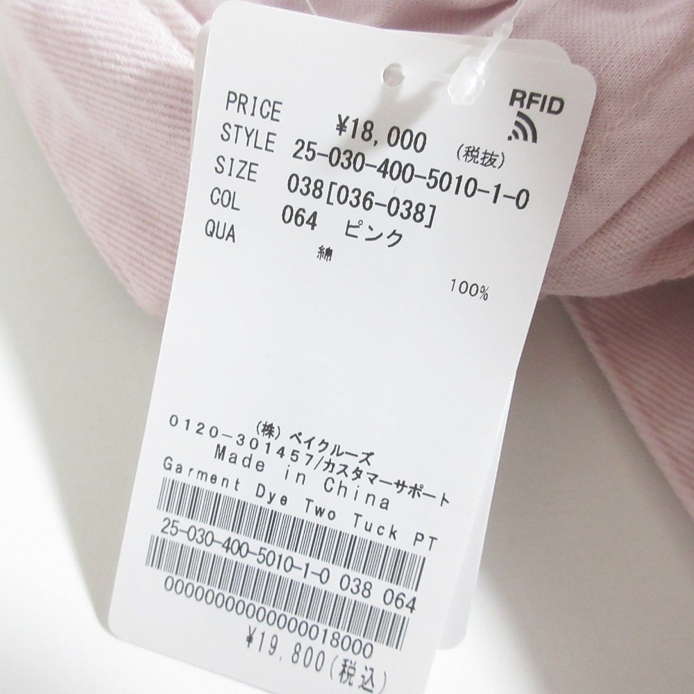 良品 25SS JOURNAL STANDARD ジャーナルスタンダード ガーメントダイ ツータックパンツ 25030400501010 サイズ38 ピンク