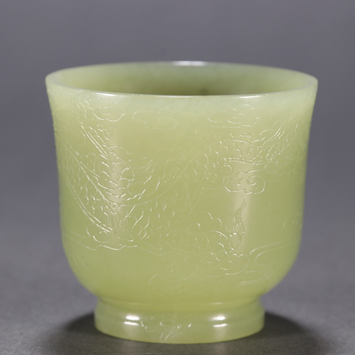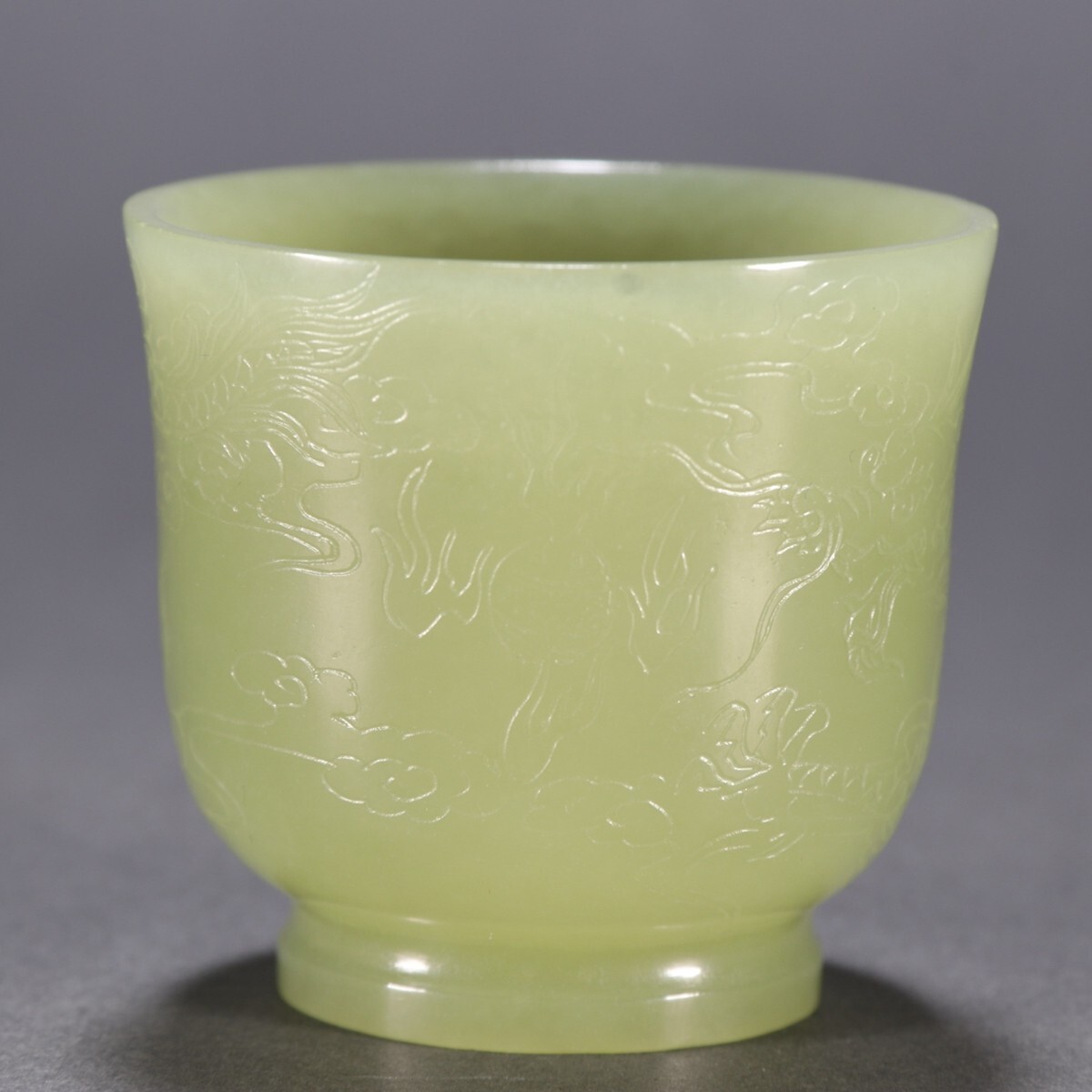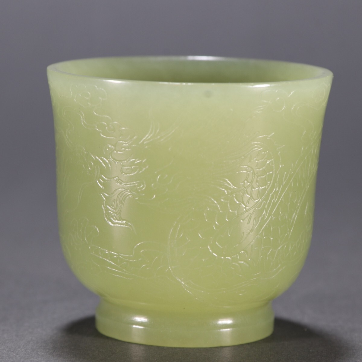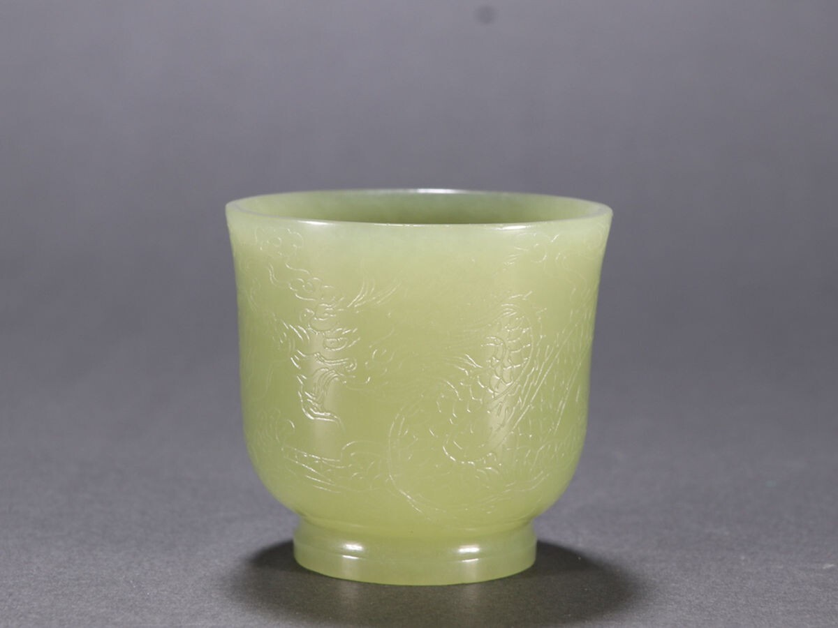 清時代 和田玉 黄玉彫 龍紋 杯【仁】極細工 手彫り 置物擺件 古賞物 蔵出