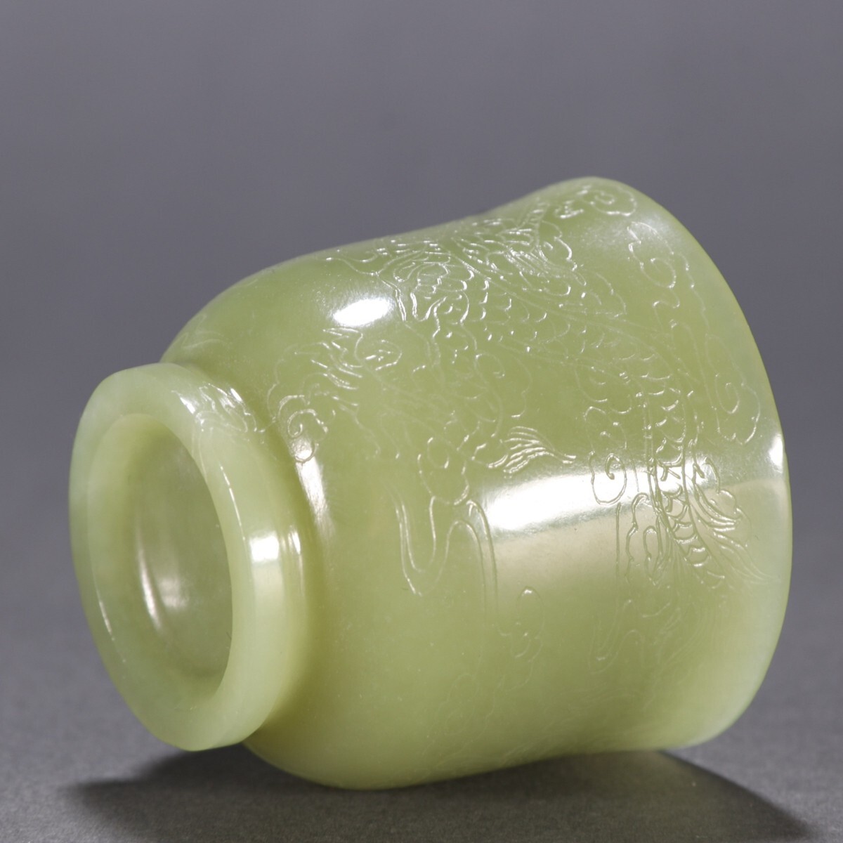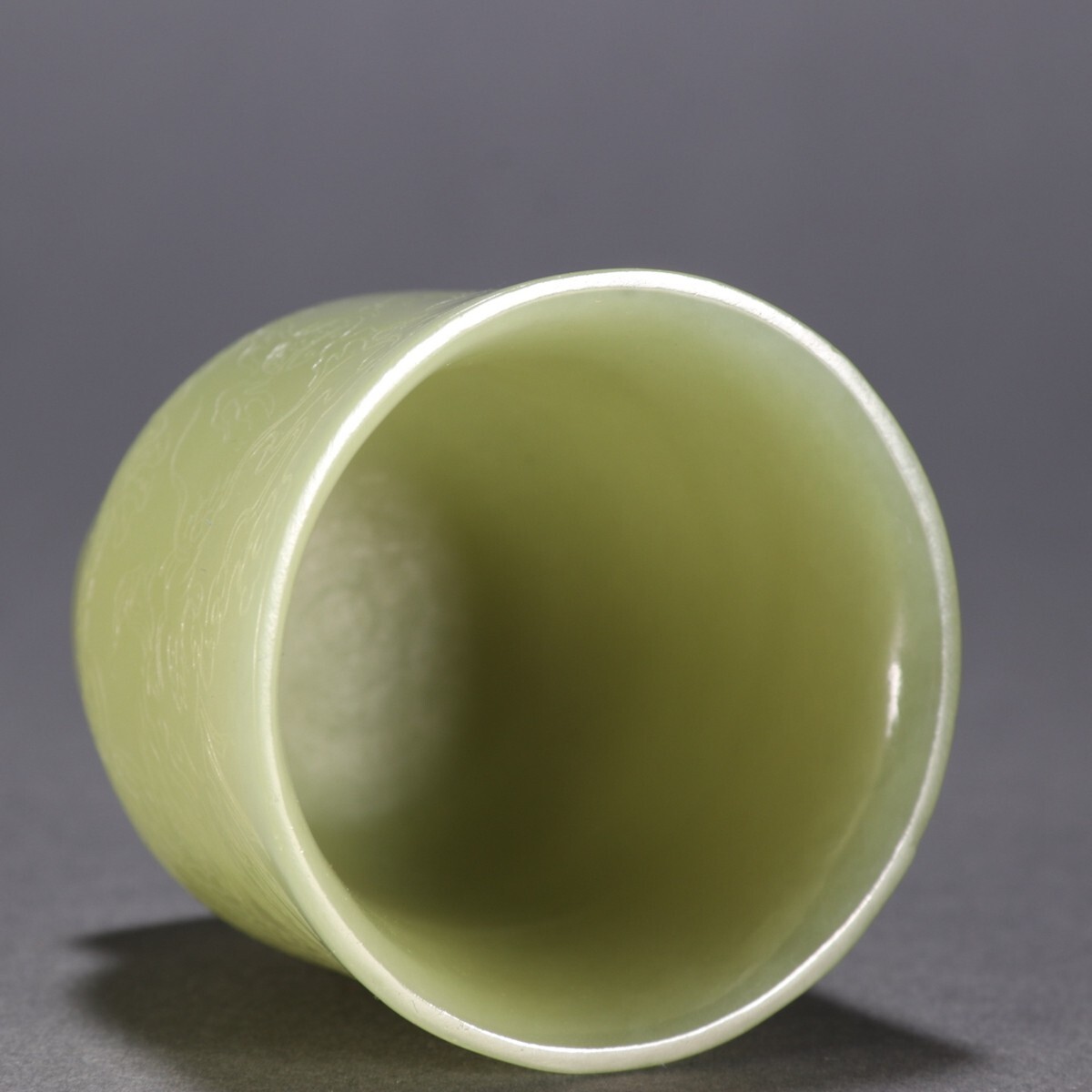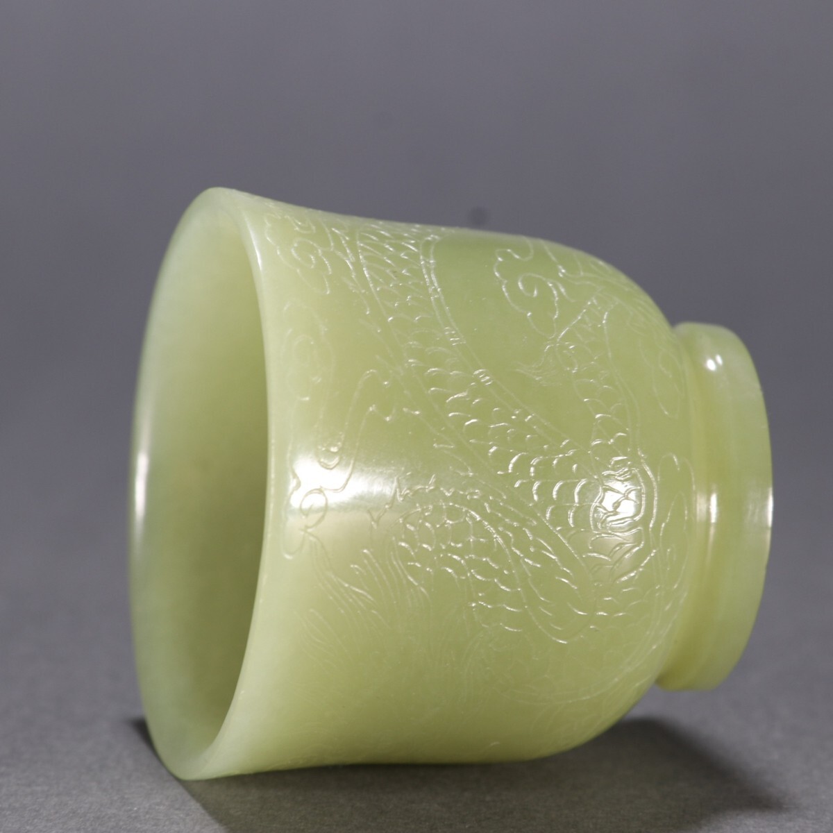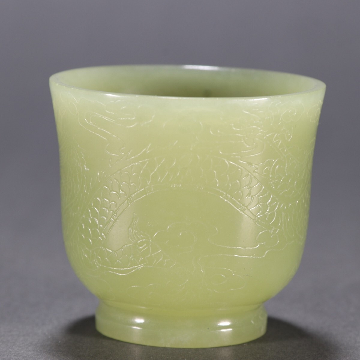 清時代 和田玉 黄玉彫 龍紋 杯【仁】極細工 手彫り 置物擺件 古賞物 蔵出