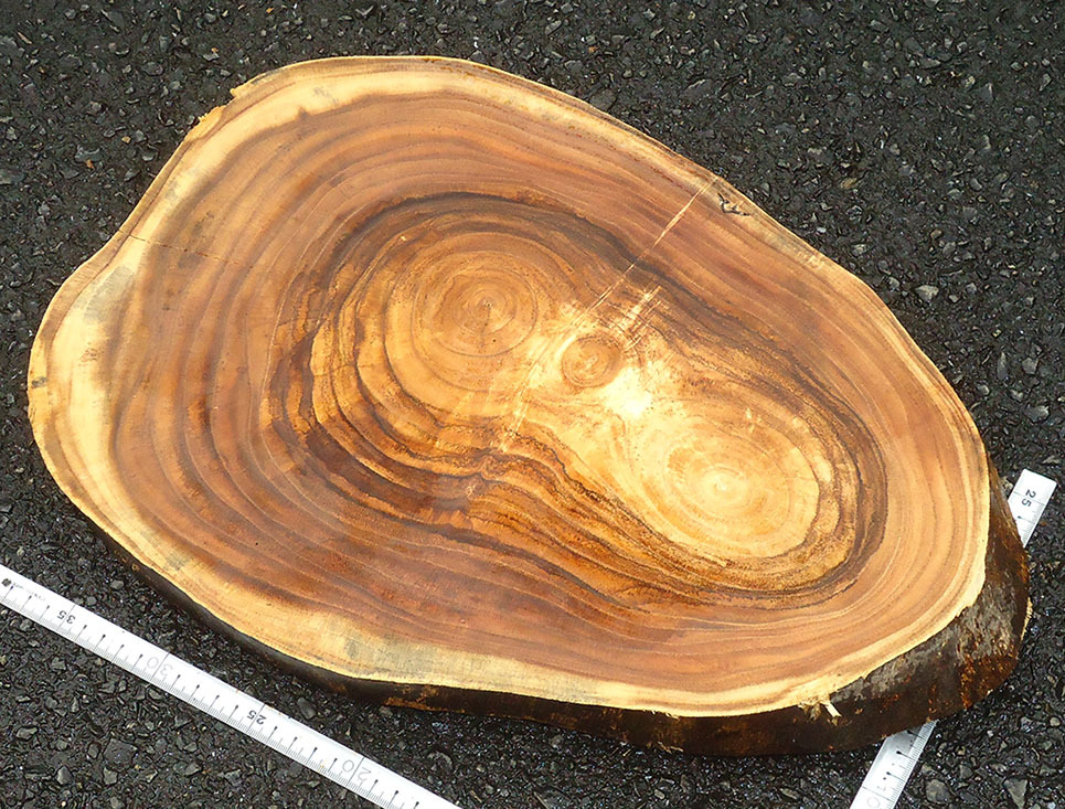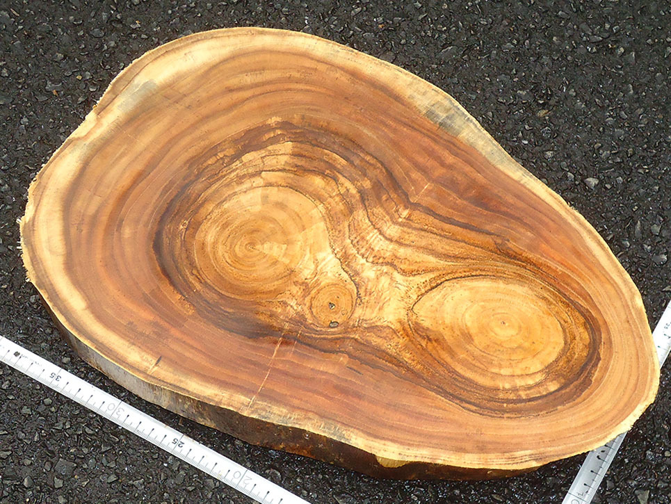 ・ネムノキならではの黒茶色と、見栄えある2目玉杢を活かした木工品に最適です。