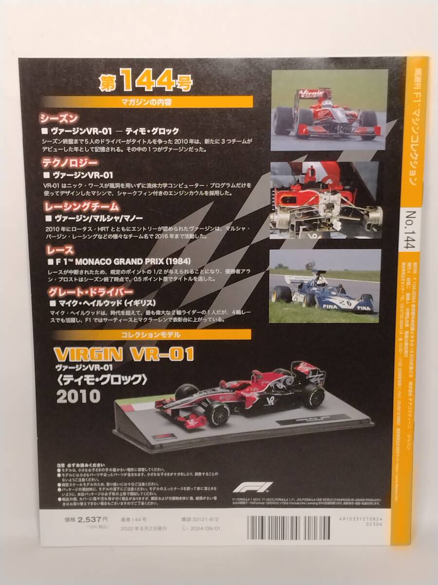 DeA デアゴスティーニ 隔週刊F1マシンコレクション No.144 ヴァーチャル VR-OI VIRGIN VR-01 Timo Glock〈 ティモ・グロック 〉2010 |