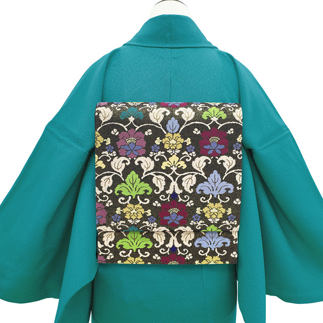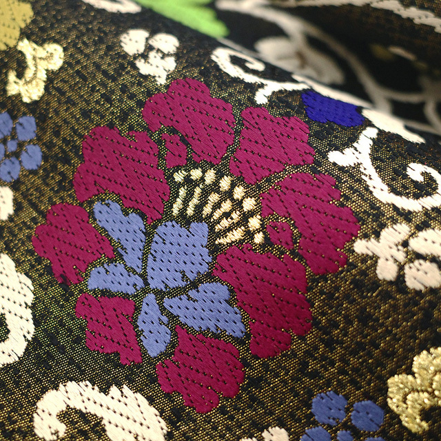 個性的なお色合いで花更紗が織り上げられています。