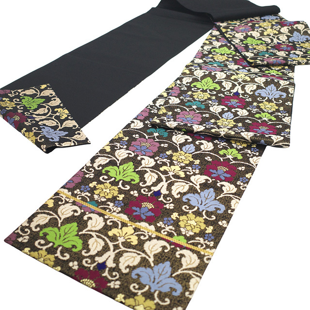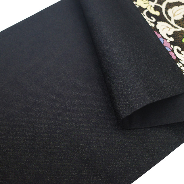 【新古品】 袋帯 未使用 正絹 フォーマル 京都 西陣 金糸 黒金地 花更紗 個性的でおしゃれなデザイン 上質 春 秋 冬 仕立て上がり みやがわ sb54332