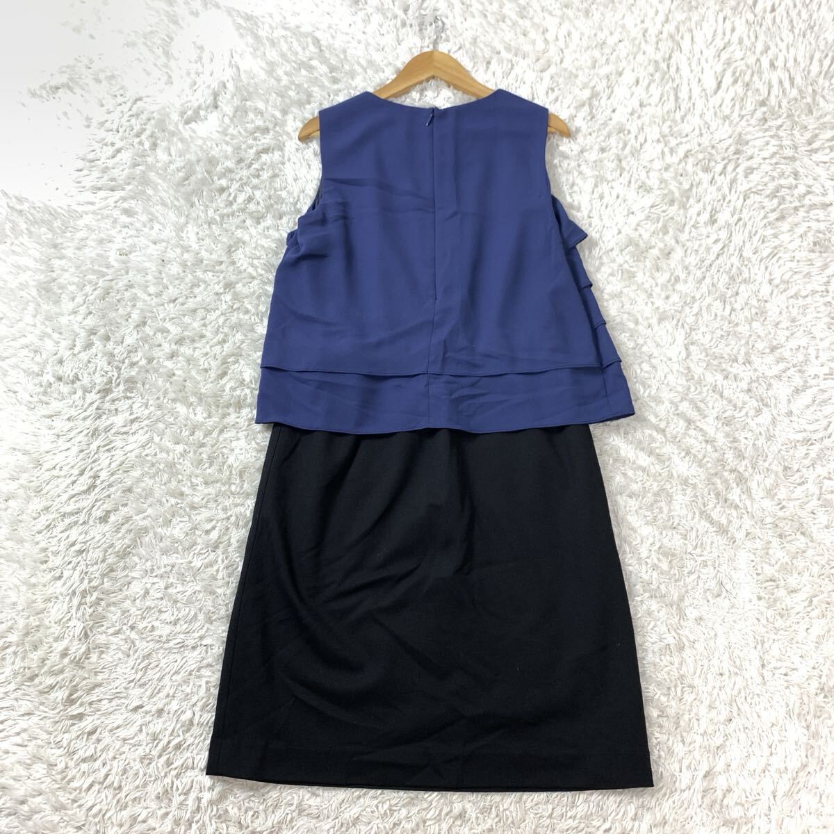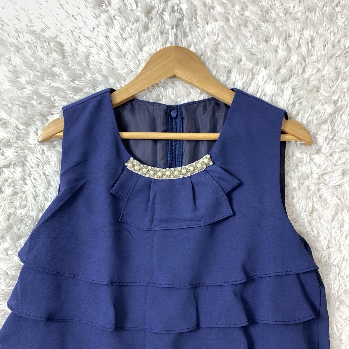 BEAMS HEART ビームスハート ノースリーブワンピース フリル デザイン ドレス ネイビー ブラック ポリエステル レーヨン ナイロン 1 YA37