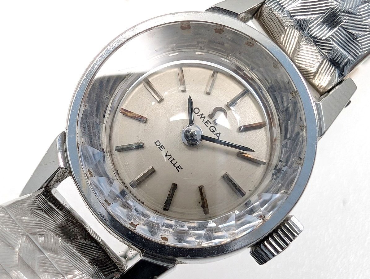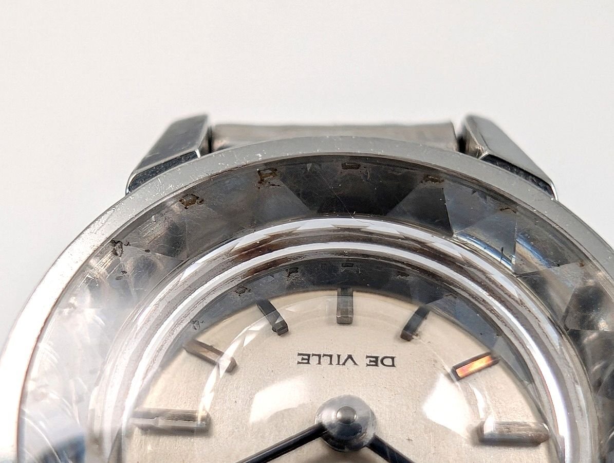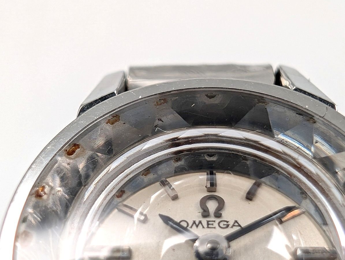 大小の深い擦り傷があります。 風防の内側に褐色の錆びのような汚れがあります。 |