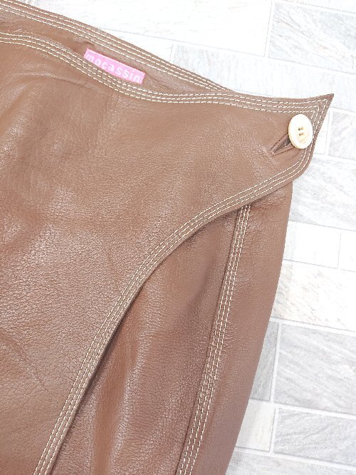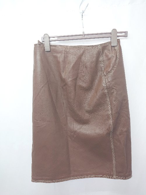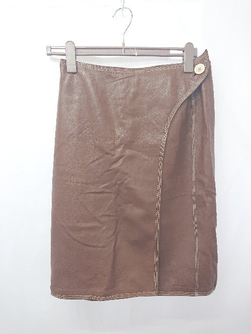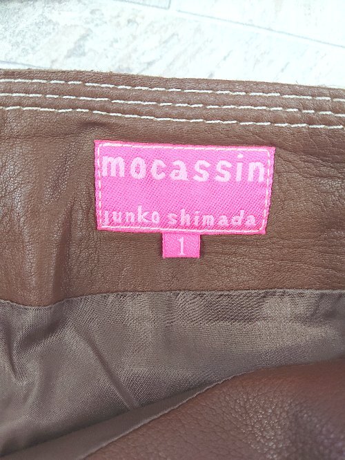 ◇ ⊆ モカサン ジュンコシマダ 羊革 膝下丈 台形 スカート サイズ1 ブラウン系 レディース E