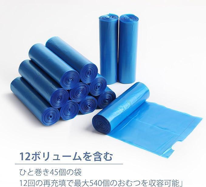 AromaRoomの電動おむつペール用のリフィルバッグ540枚セット、新生児用に最適、防漏性と防臭性におむつごみ袋、12ロール(スタンダードサイズ)
