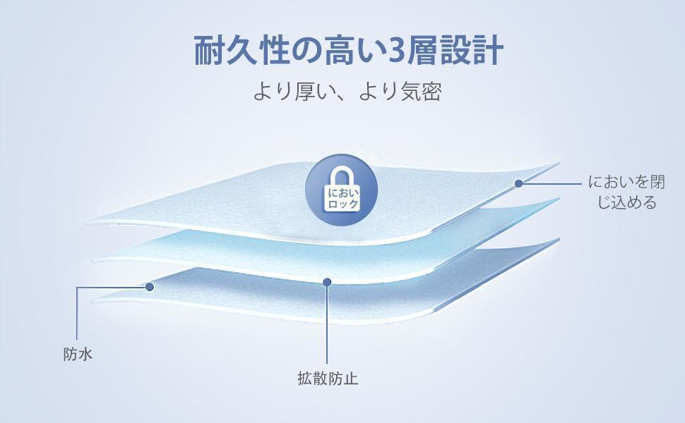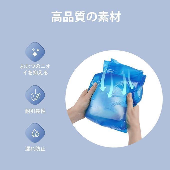 【漏れや臭いを防ぐ】多層POプラスチックフィルムで作られ、汚れたおむつの臭いをロックし、クリーンで臭いなしに保つことができます。