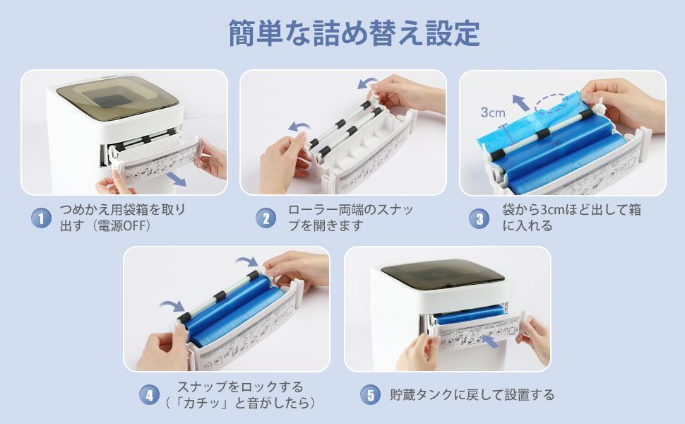 【ロール式デザイン】ロール式ゴミ袋はお部屋、リビング、バスルーム、キッチン、車などに置くことができます。