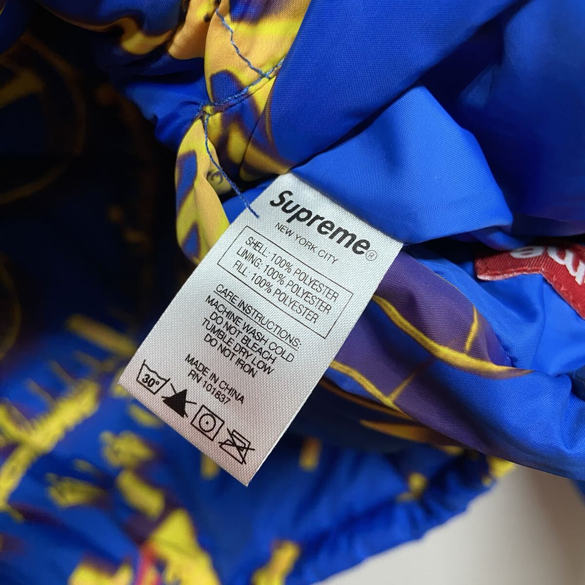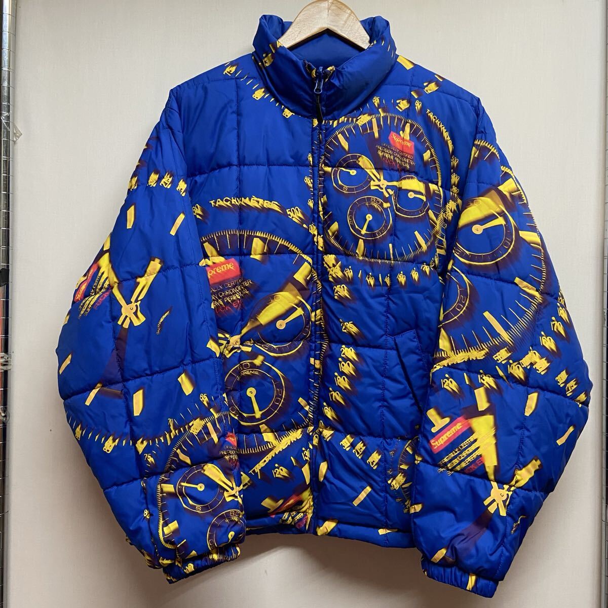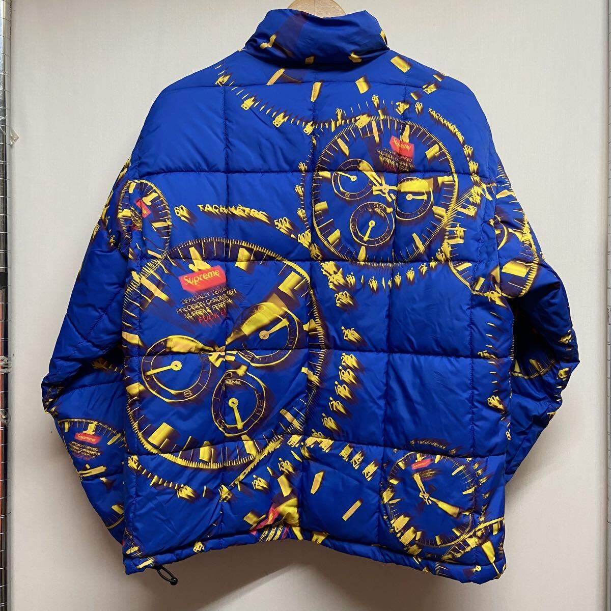 【supreme シュプリーム】20AW Watches Reversible Puffy Jacket ダウンジャケット リバーシブル S ブルー 総柄 ナイロン 2508oki M