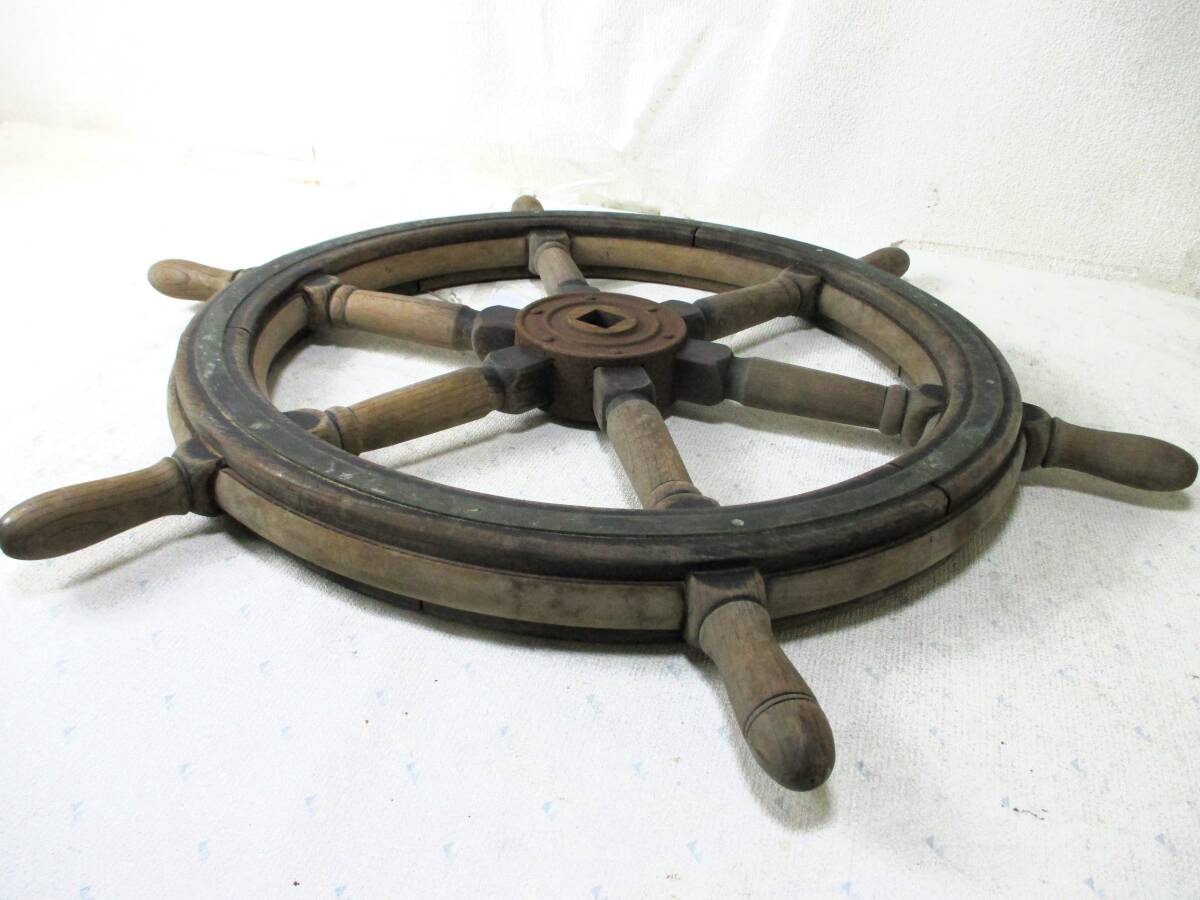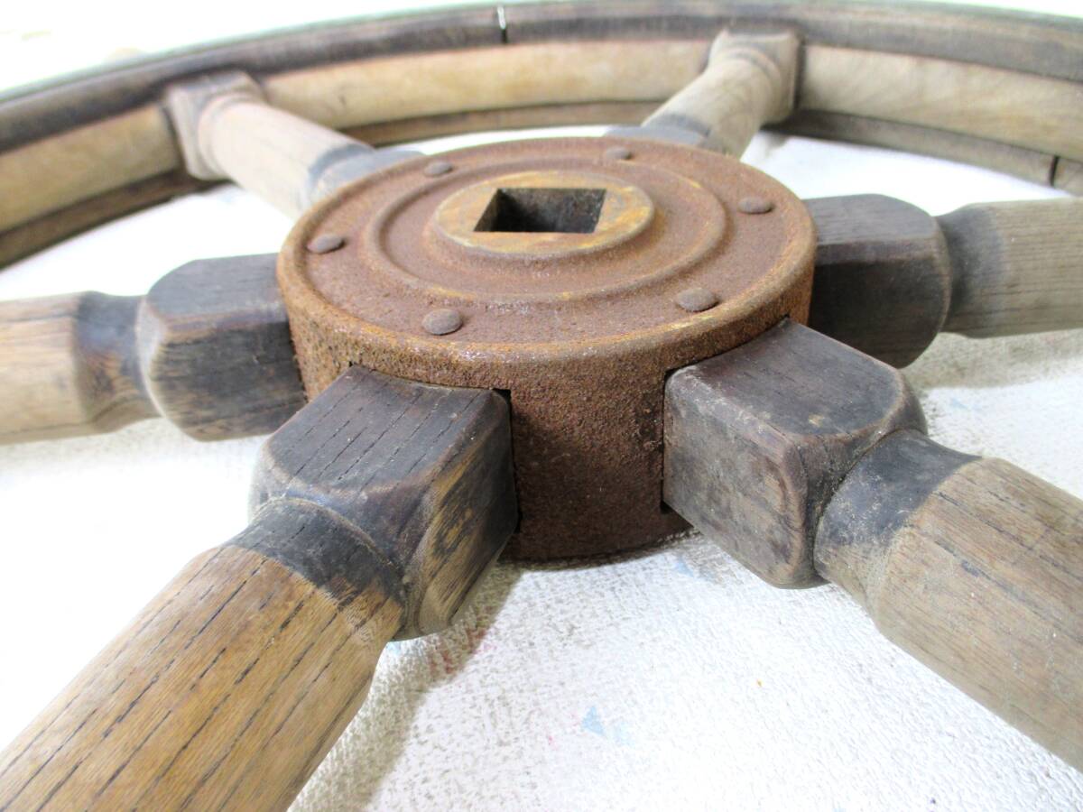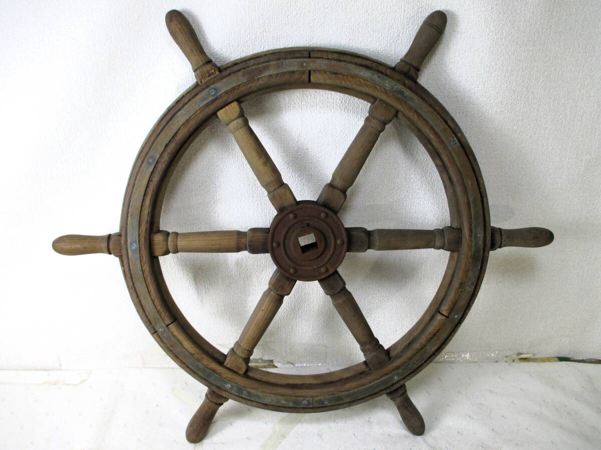 船舶 操舵輪 舵輪 ラット 舵 木製 アンティーク インテリア 船舶ハンドル 直径約74㎝ ヴィンテージ オブジェクト (5998)