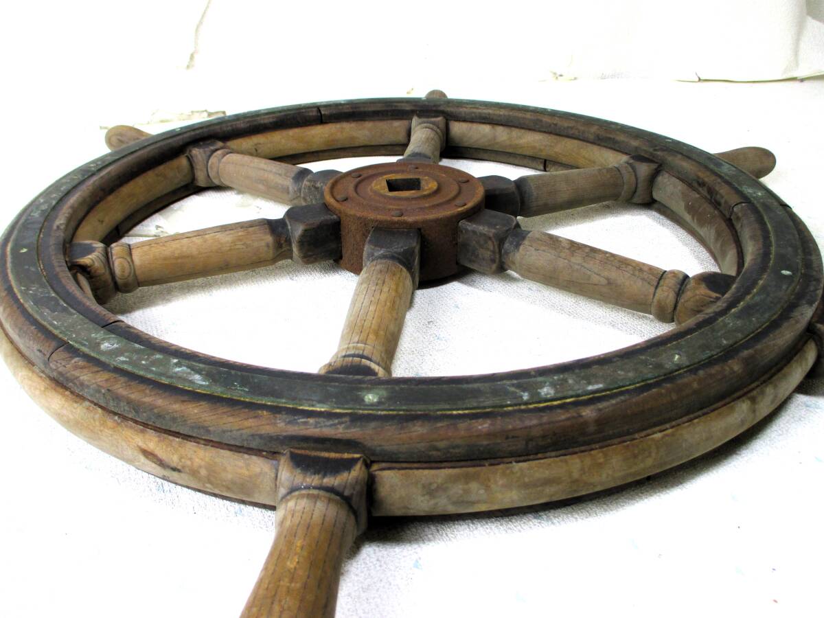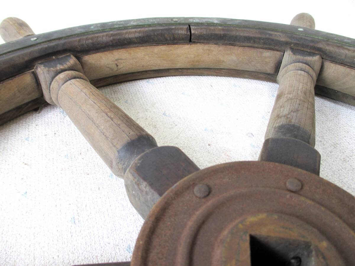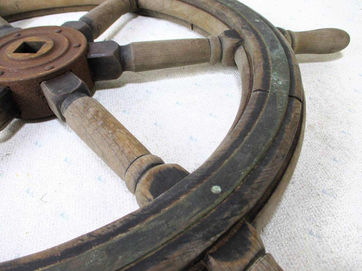 船舶 操舵輪 舵輪 ラット 舵 木製 アンティーク インテリア 船舶ハンドル 直径約74㎝ ヴィンテージ オブジェクト (5998)