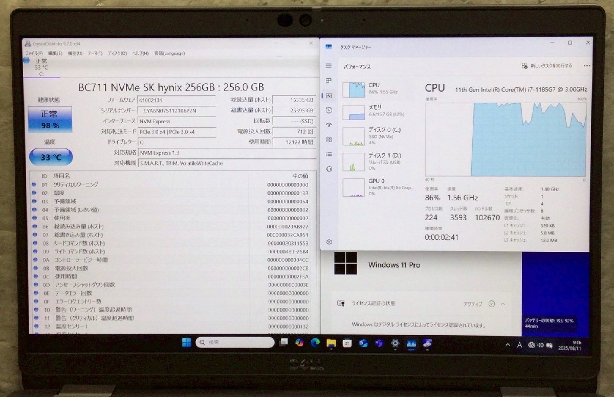 | ライセンス確認 | 〇 | CrystalDiskinfo | 〇 |