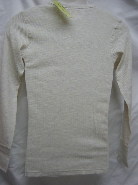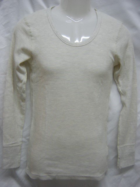 アメカジの定番サーマルシャツです。クルーネックのロングスリーブタイプです。伸縮性がかなりありますので着こなしにあわせてサイズセレクトしてください。 【ロングスリーブ】 L 胸囲43cm 着丈65cm 袖丈63cm。 沖縄離島を除く全国500円でお送りいたします、落札価格にプラスでお願いいたします。