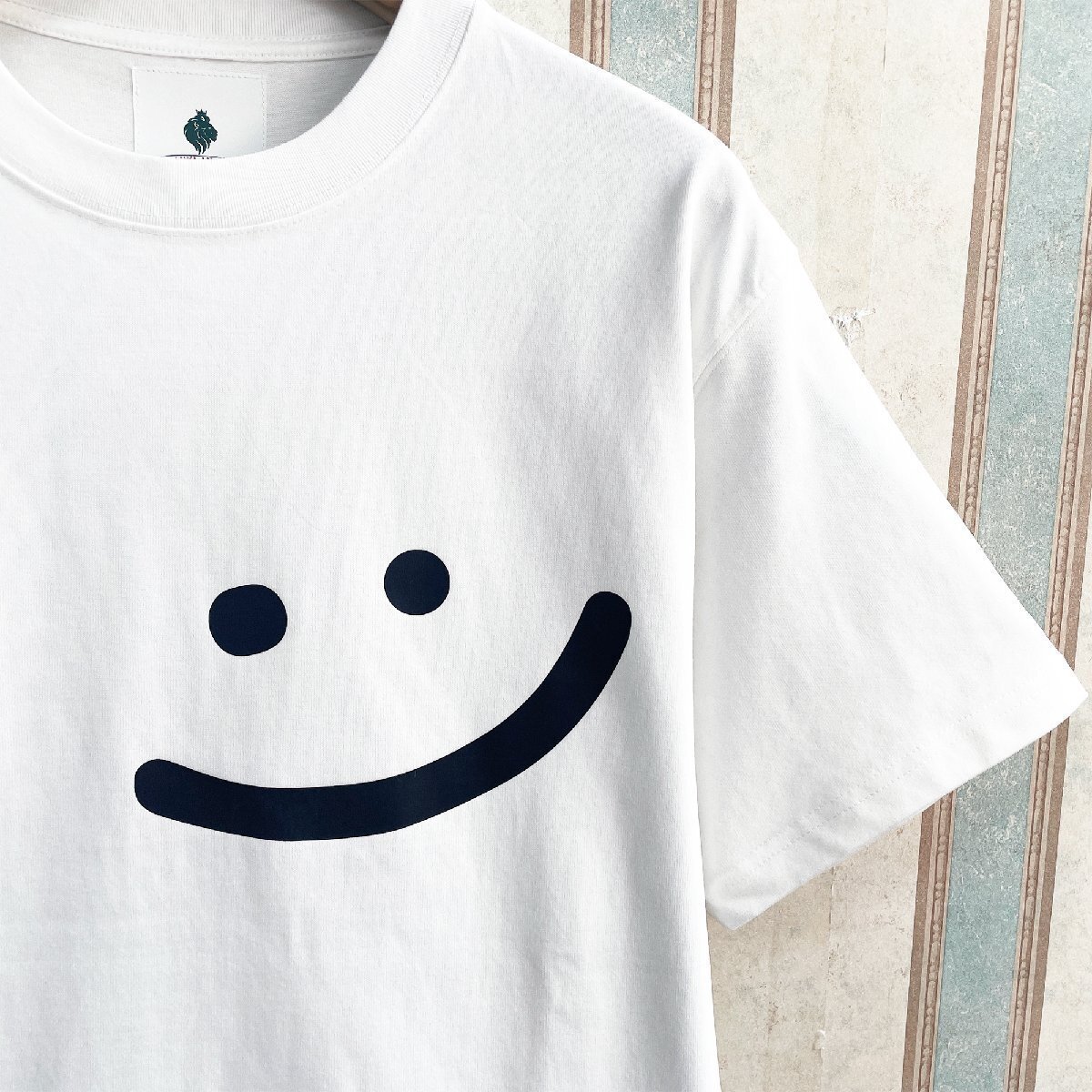 コーディネートに取り入れやすいベーシックカラーで、デイリーに活躍します。プリントされた英字と笑顔柄がリラクス感を醸し、大人過ぎない佇まいを演出。裾のシンプルなワンポイントデザインロゴも注目ポイントです。シンプルになりがちな春夏のTシャツスタイルの、着こなし幅を広げるイチオシアイテムです。