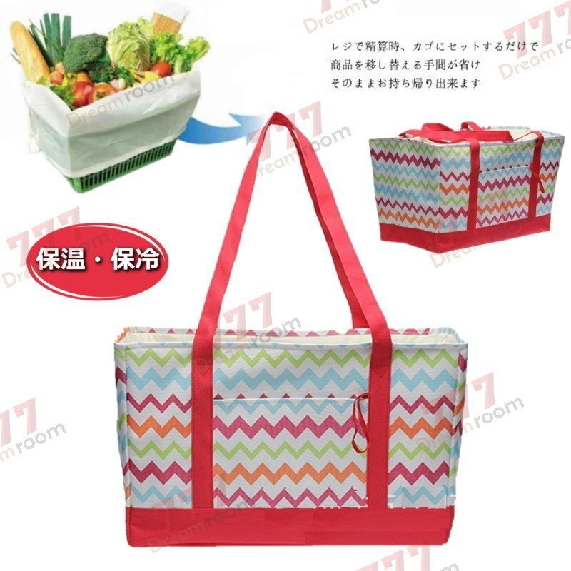 袋詰め不要!便利な レジかごバッグ エコバッグ 大容量 30L 買い物かご 折りたたみ 保冷バッグ F-222-01