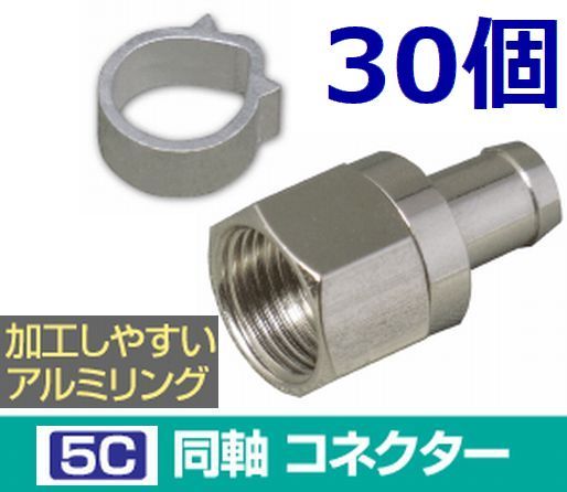 ゆうパケット無料!5C コネクタ アルミリング付 30個セット 4K8K対応 F型コネクタ F型接栓・ 5Cコネクタ 30個