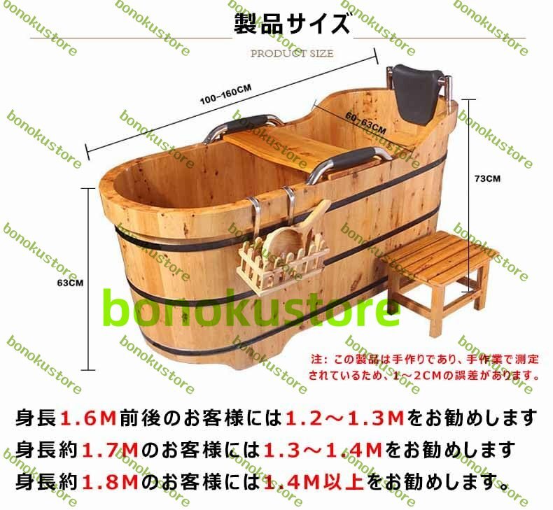 木製浴槽 浴槽 成人用浴缸 お風呂成人バケツ 美容院サウナ 家庭用湯桶 木製バスバレル 天然香料ひのき浴槽 風呂桶 バスタブ 長さ1M-1.4M 身長1.5m?1.8mに適しています 日本風の浴槽 - 伝統的な木製浴槽 スパ A 100X60X73CM