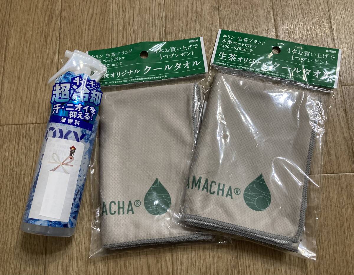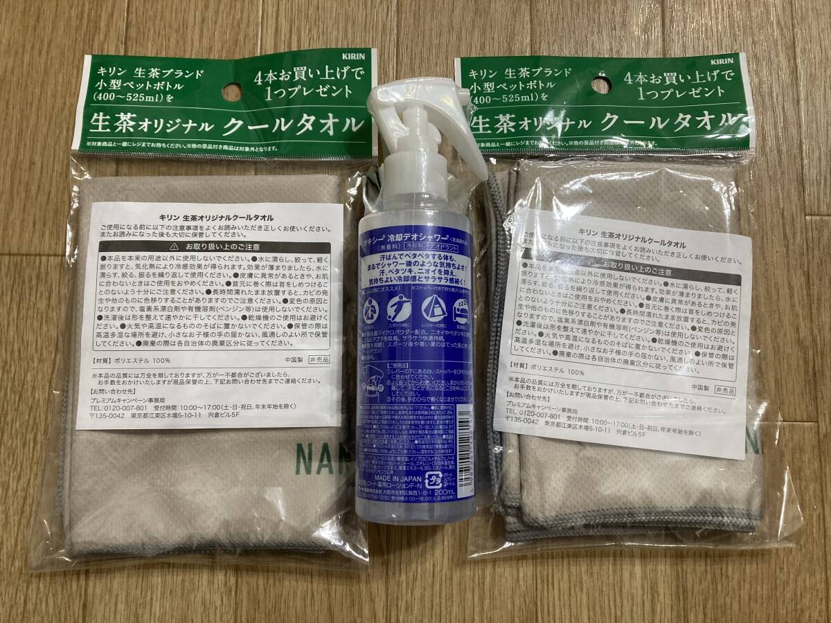 生茶クールタオル 2枚 と OXYオキシー 冷却デオシャワー 200ml 日本製 無香料 をセット