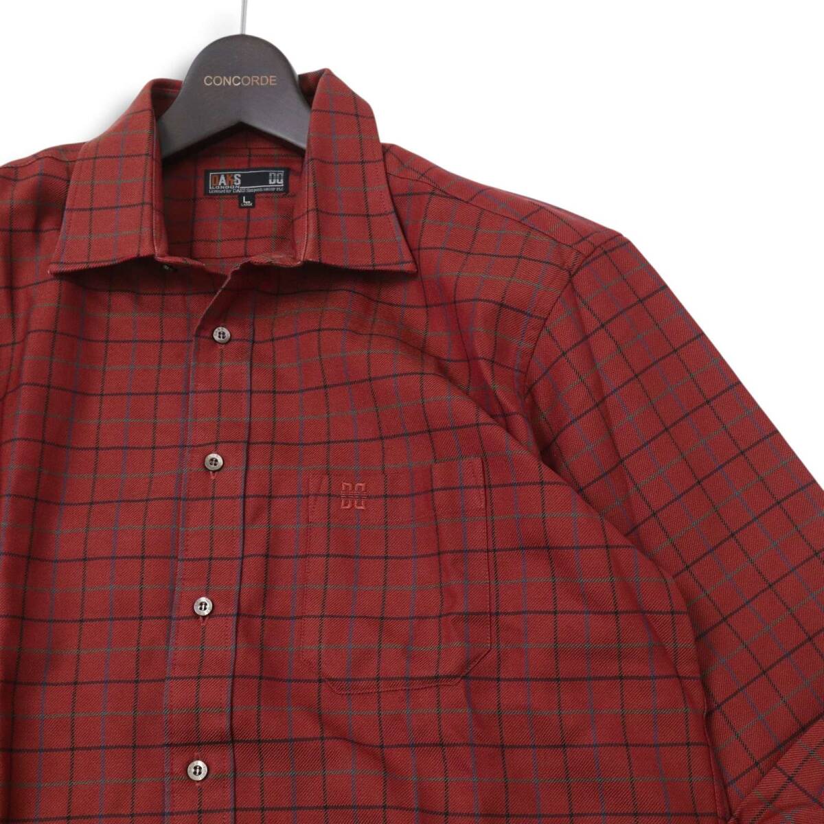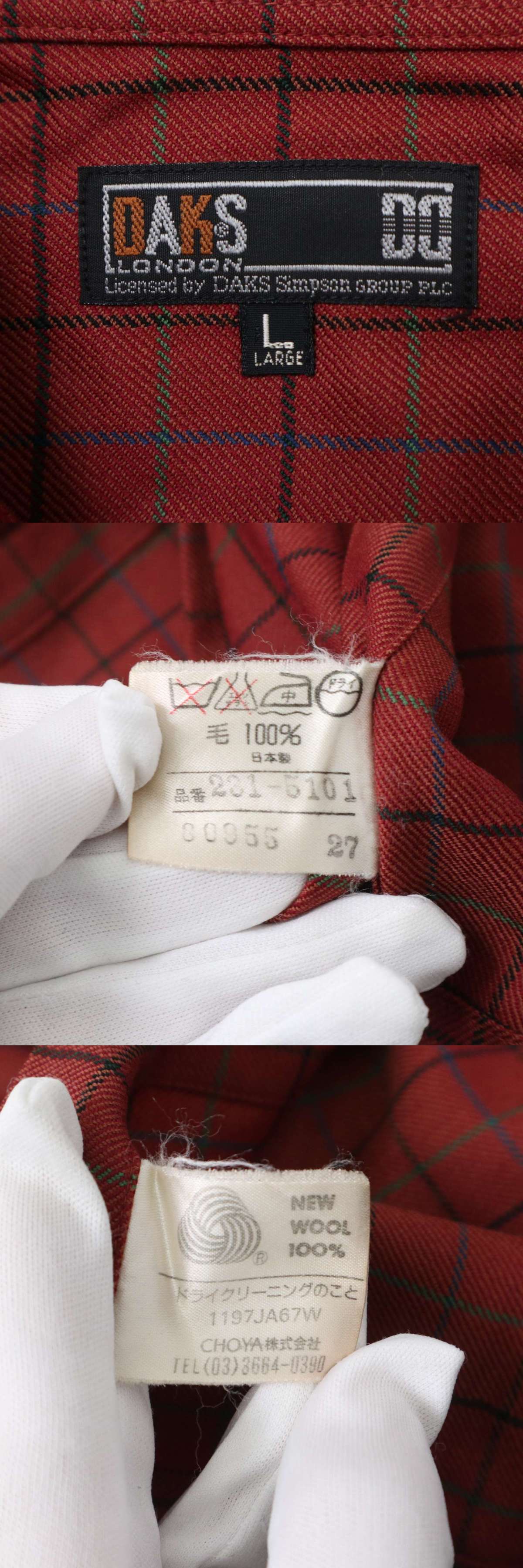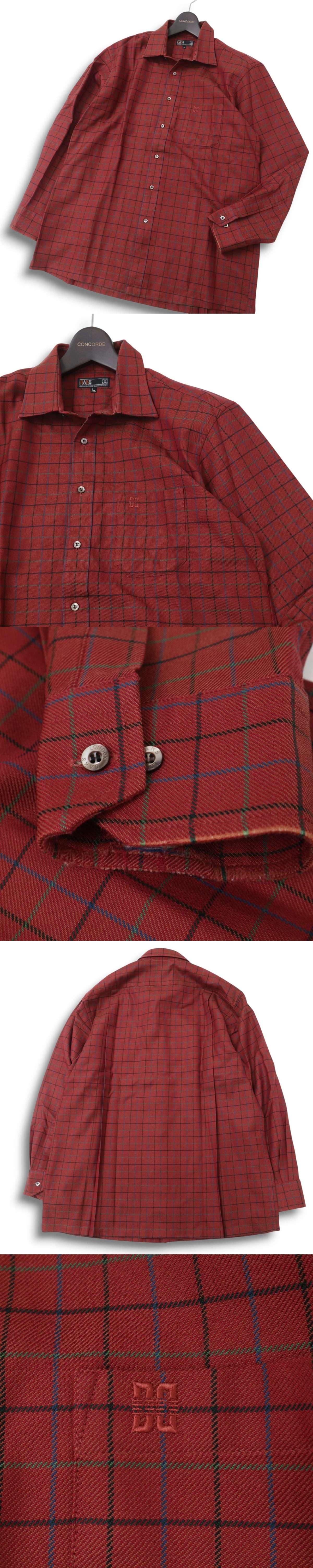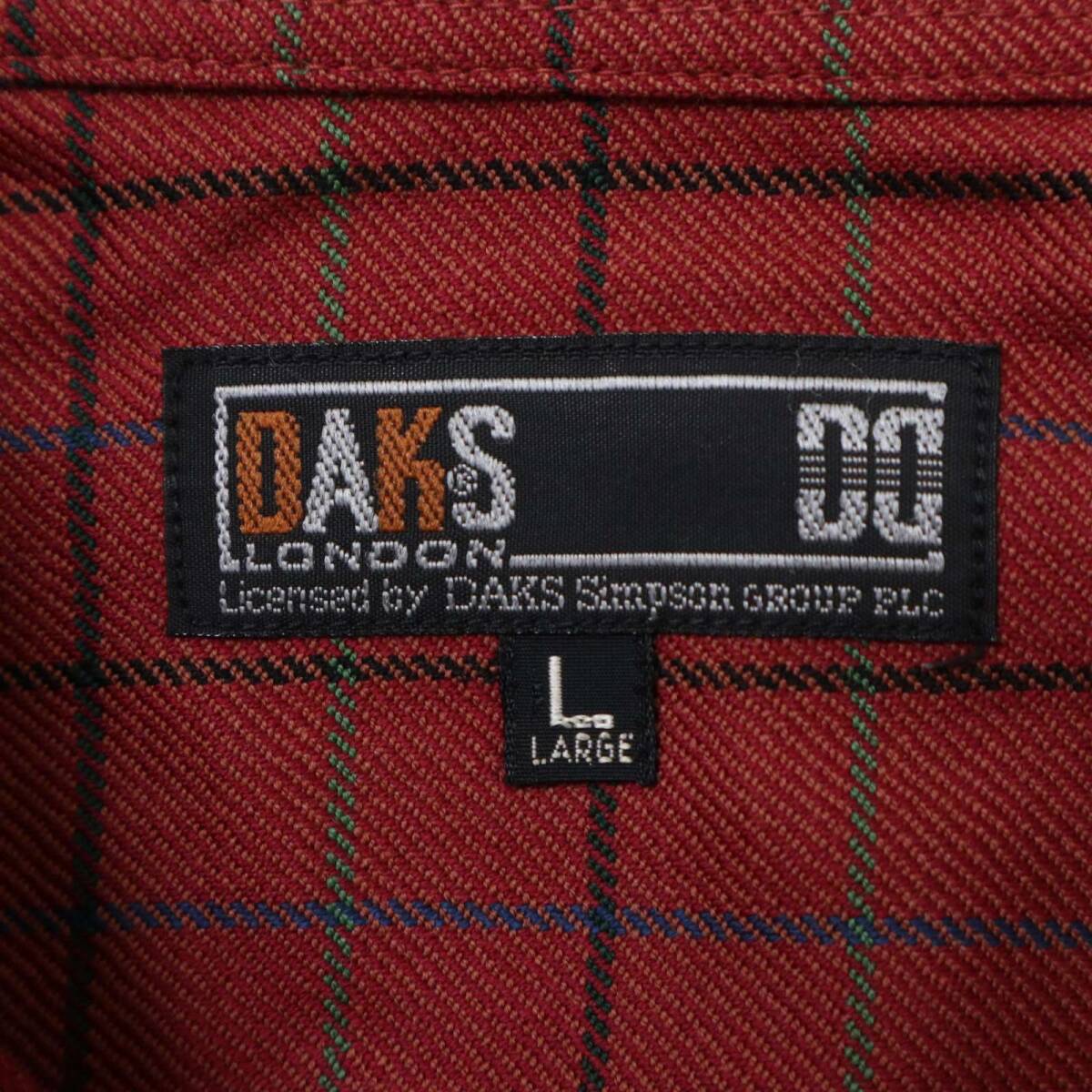 DAKS ダックス 通年 ロゴ刺繍★ ウール100% チェック 長袖 シャツ Sz.L メンズ 日本製