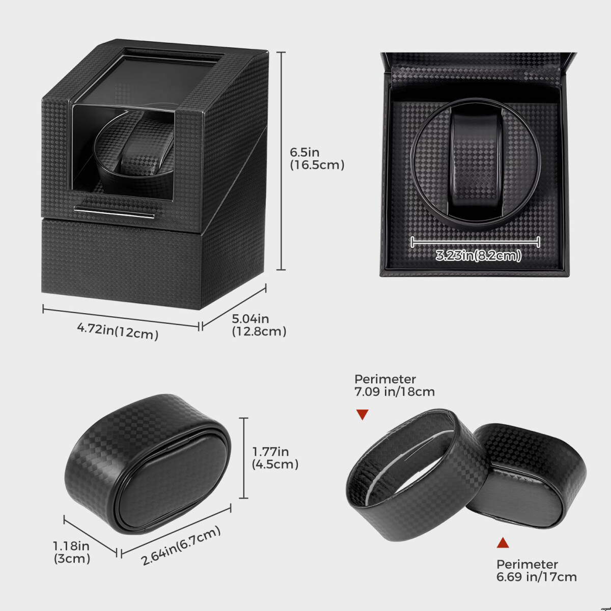 【自動巻き腕時計に最適なワインダーケース】 腕時計ワインダー 幅12cm 携帯用 腕時計メンテナンス USB充電 カーボンファイバー