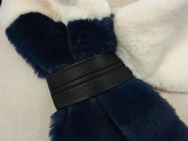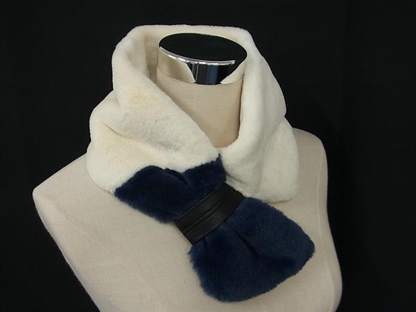 ■新品■未使用■ FURART ファーアート ポリエステル100% ティペット マフラー 防寒具 レディース アイボリー系×ネイビー系 DG1060