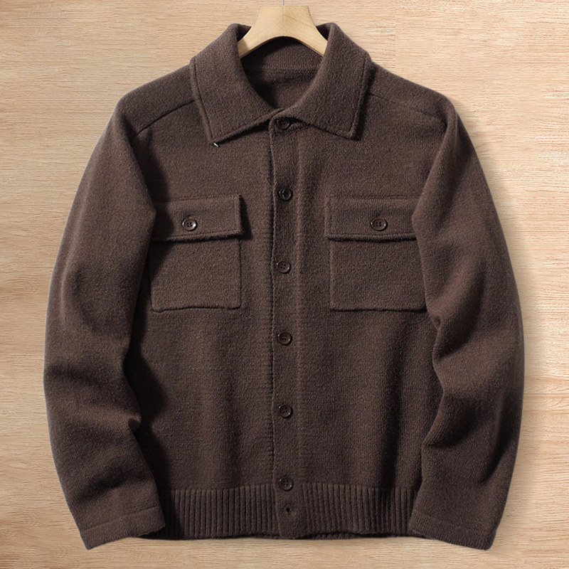 Y6322-L モカ 新品 ウール混 セーター 肌ざわりが良い カーディガン ニット 柔らか 暖かさ 秋冬 メンズ カジュアル アウター トップス
