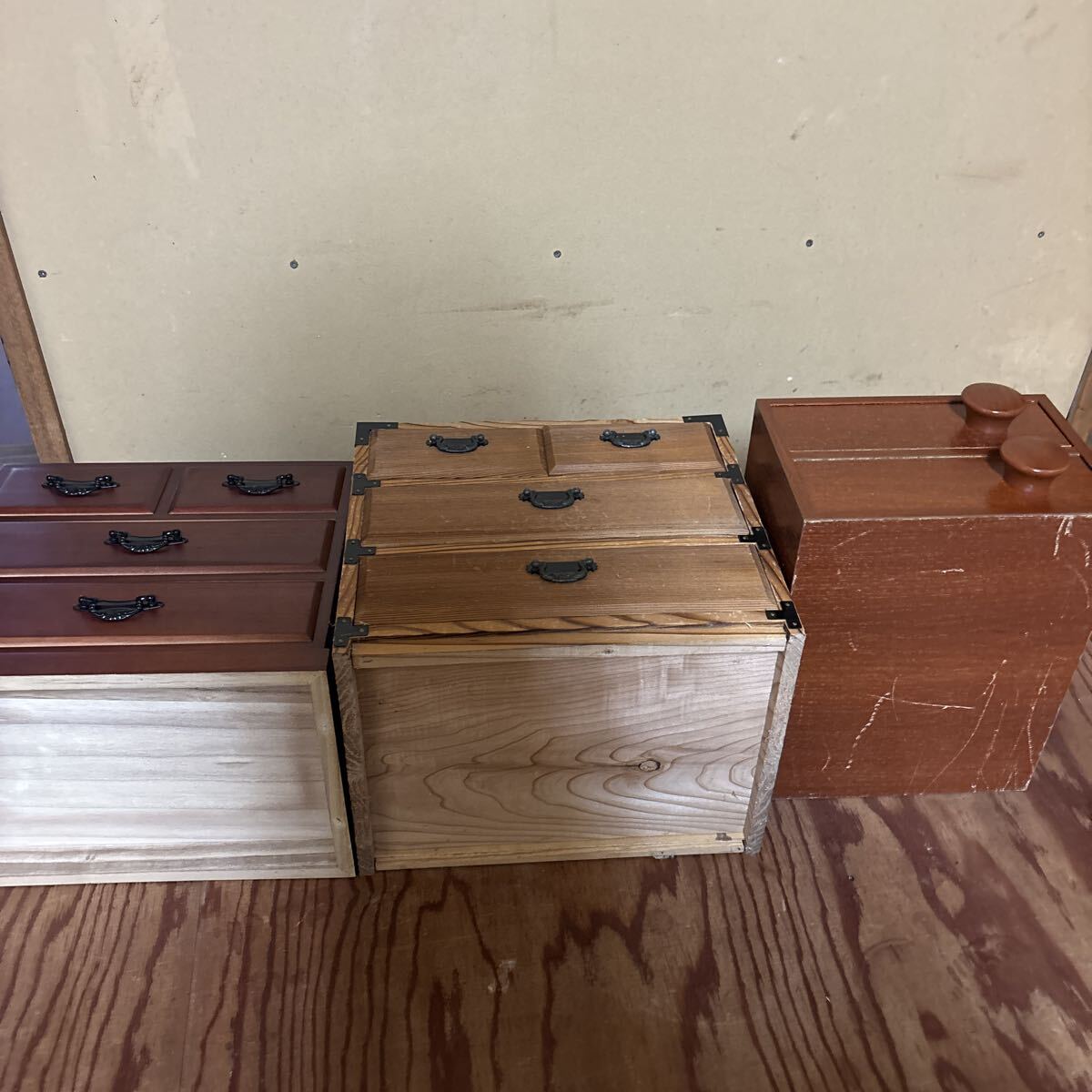 真ん中の桐の小物入れは古い物なので、特にスレやキズ、劣化が見られます。