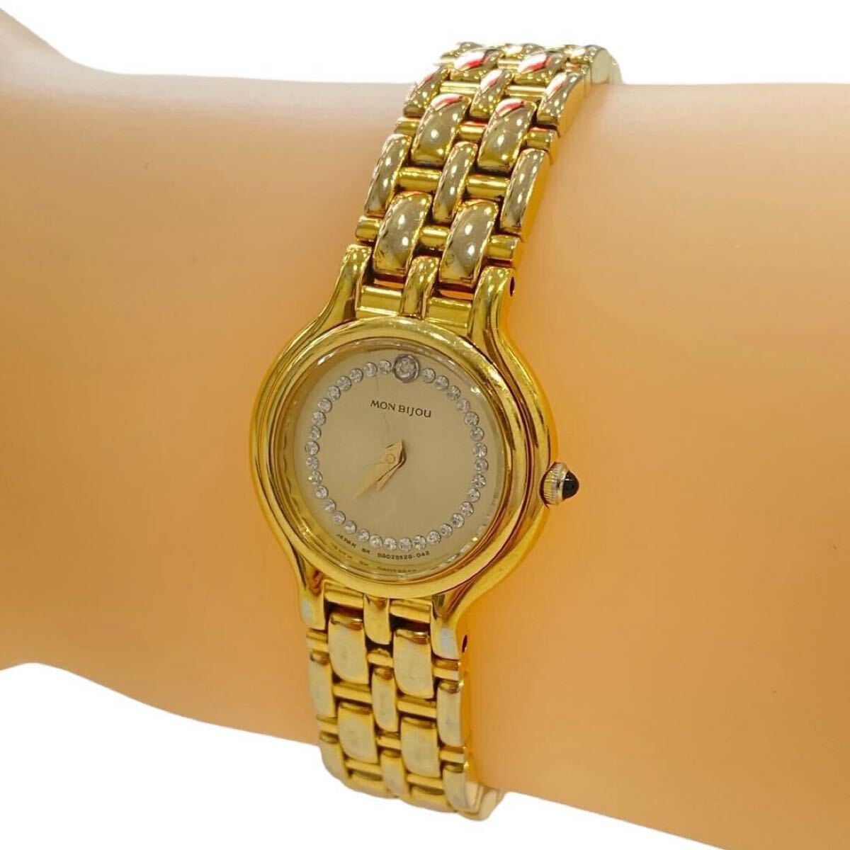 【稼働品】ORIENT オリエント MON BIJOU モンビジュー 18K+GP SS レディース腕時計 クォーツ QZ ゴールド D80552-00CS