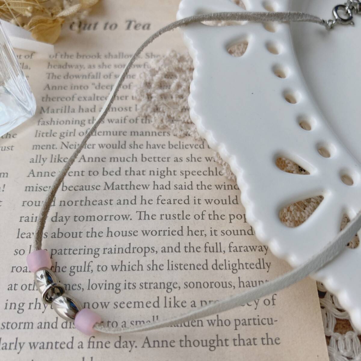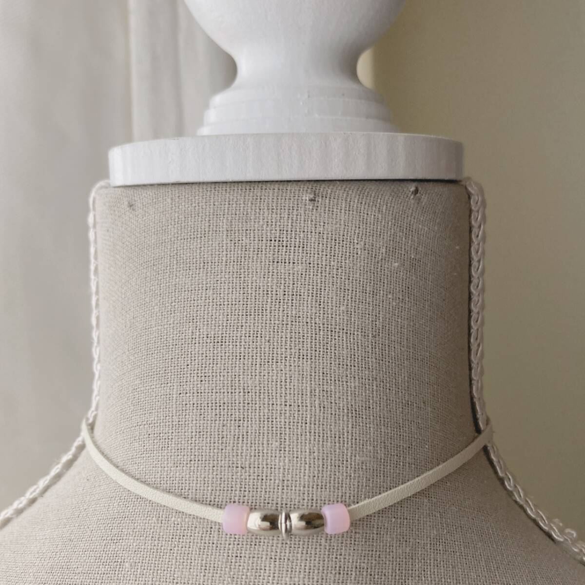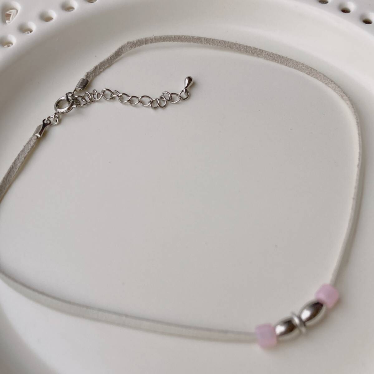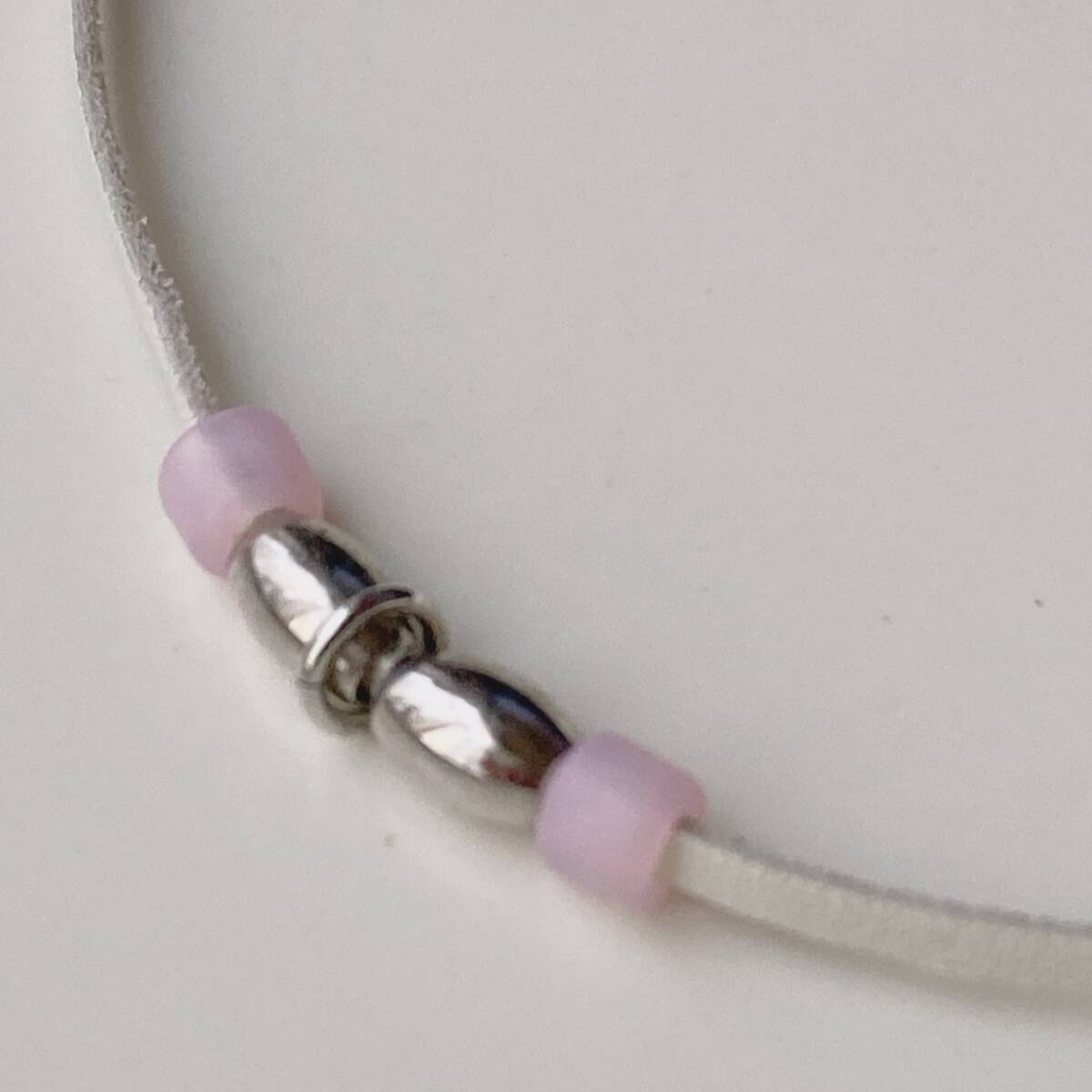 ネックレス レザー チョーカーネックレス シルバー ピンク 美品☆vintage jewelry accessoriesR0987