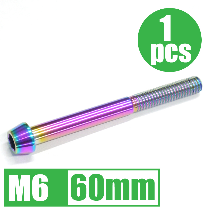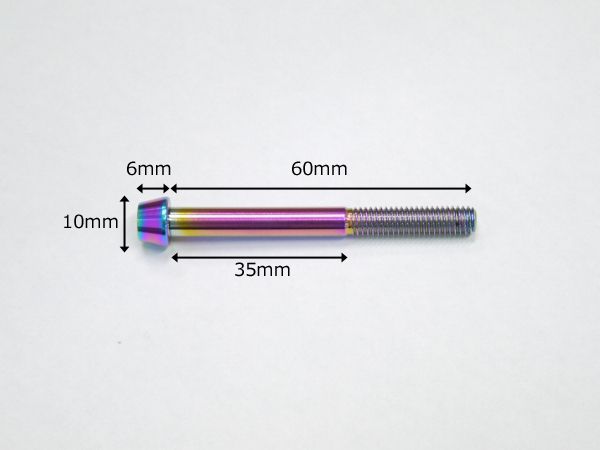 64チタン合金ボルト M6×60mm P1.0 1本 テーパーキャップ ゆうパケット対応 焼き色有り Ti-6Al-4V
