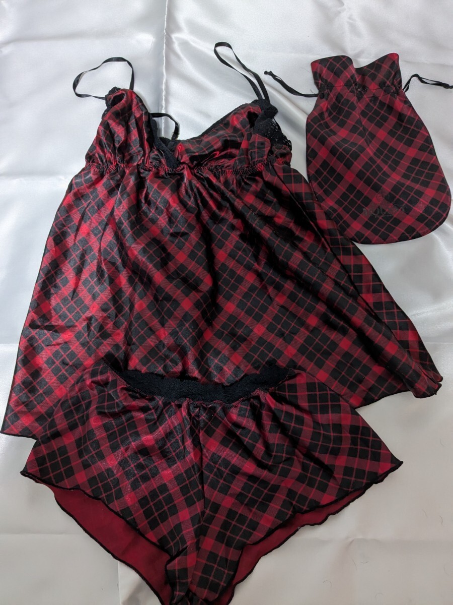 赤と黒のチェック柄のレース付き